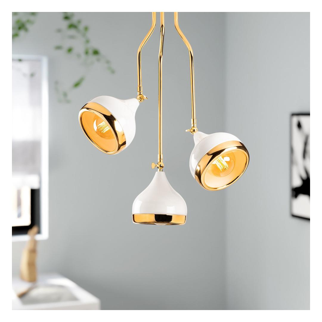 Lühteril on tugevast metallist korpus, mis tagab vastupidavuse ja pikaealisuse. Selle peen valge ja kuldne värvikombinatsioon lisab elegantsi, mistõttu sobib see ideaalselt igasse kaasaegsesse või skandinaavia inspiratsiooniga sisekujundusse.