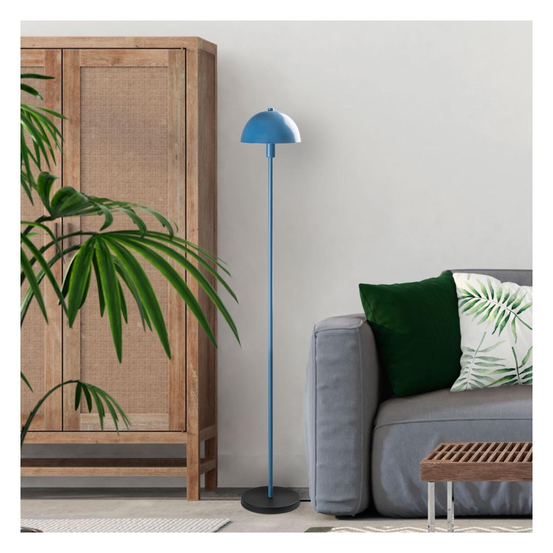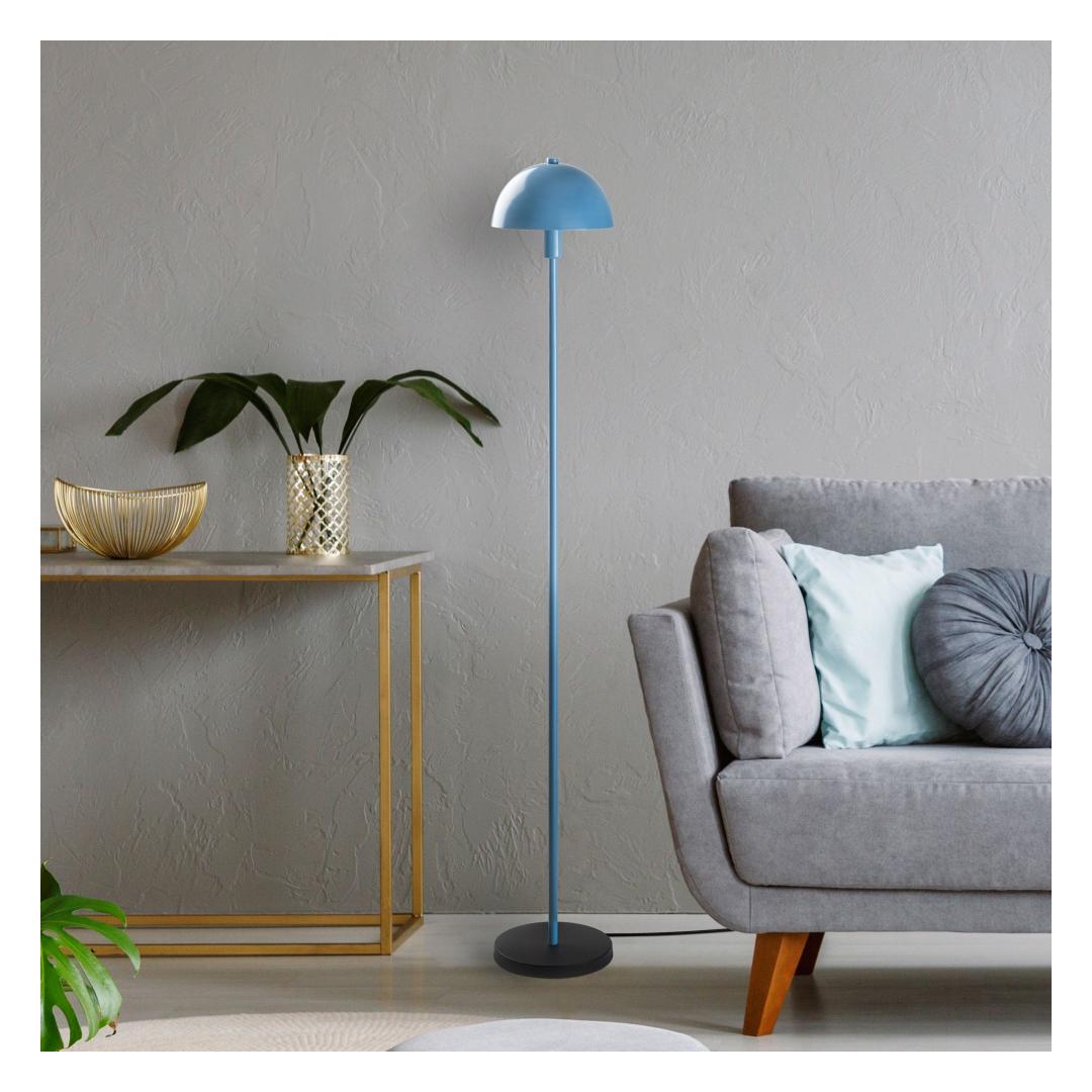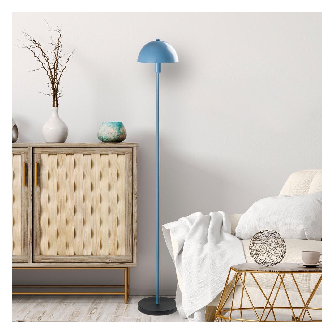 Metalline põrandalamp on varustatud sujuva metallist korpuse ja kauni sinise kupliga, mis täiendab igasuguseid värviskeeme teie kodus. Puhtad jooned ja minimalistlik disain muudavad selle mitmekülgseks osaks, mis sobib sujuvalt igasse ruumi.