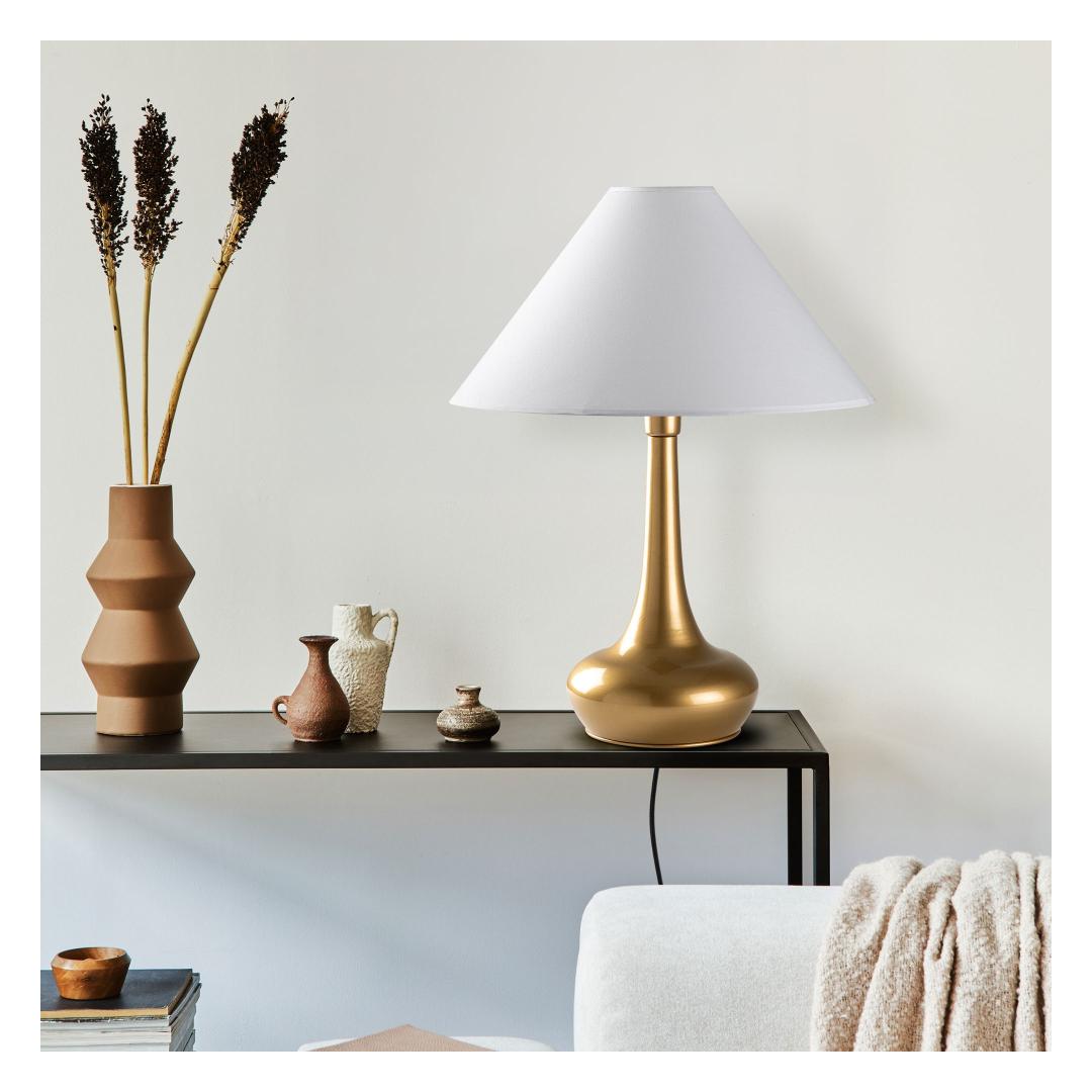 Valgustage oma ruumi elegantse ja rafineeritud metallkehaga lauavalgustiga. See hämmastav lamp omab sujuvat metallkeha koos kangast kattega, lisades igasse ruumi luksuse puudutuse. Kuld- ja valge värvi kombinatsioon loob šiki ja modernse ilme, mis tõstab teie kodu sisustust.