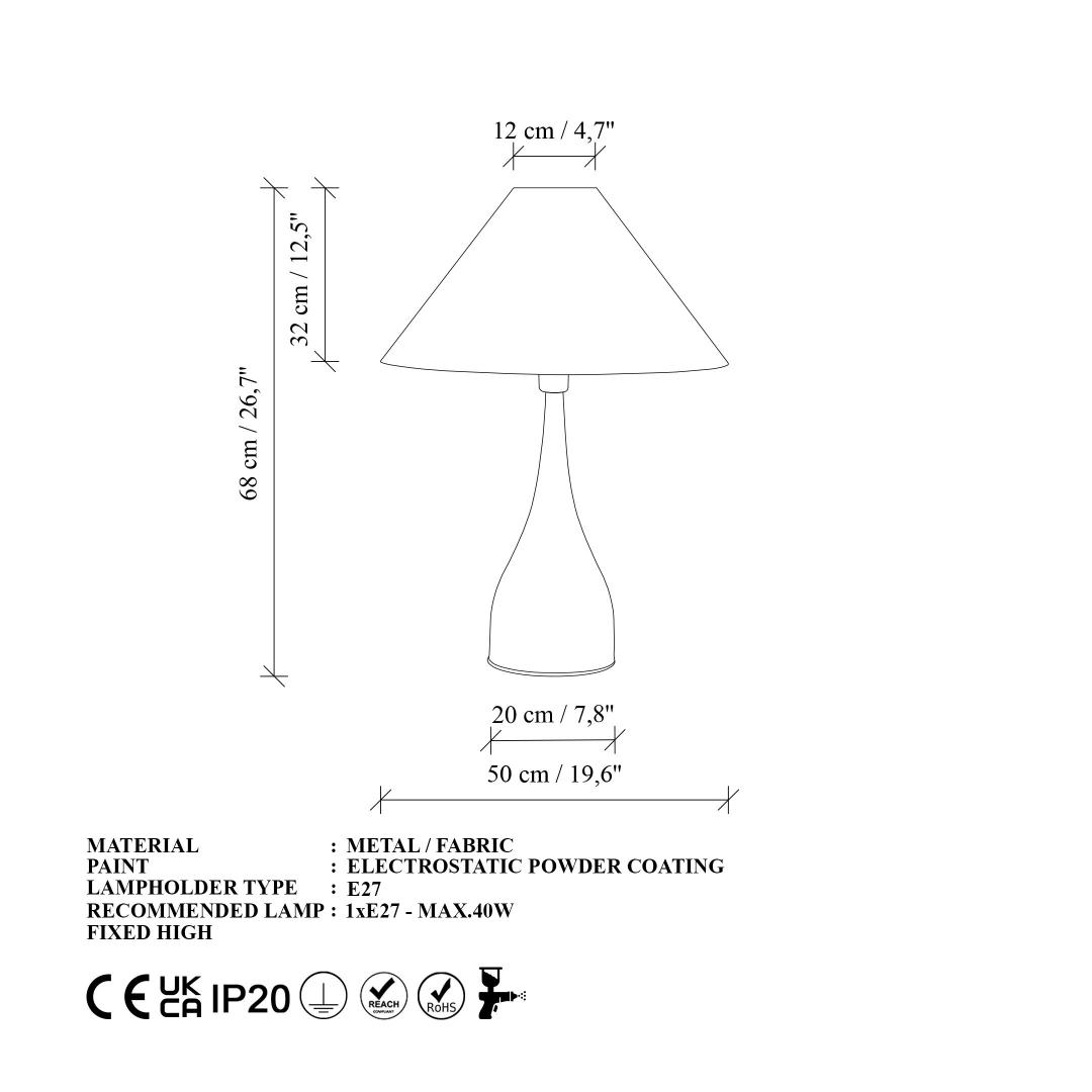 Valgustage oma ruumi elegantsi ja stiiliga meie hämmastava metallist laualambiga. See kaunis lamp omab sujuvat metallkeha ja kangast katet, luues kauni kontrasti, mis täiustab igat ruumi teie kodus. Täiuslik kombinatsioon modernsest disainist ja funktsionaalsusest, see lamp mitte ainult ei valgustata teie ruumi, vaid lisab ka teie sisustusele peenust.