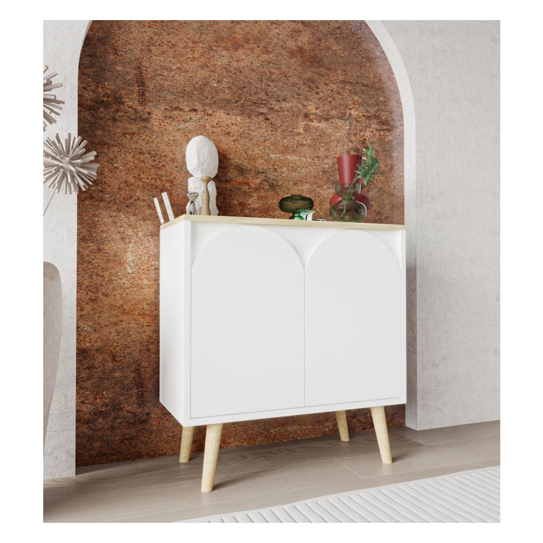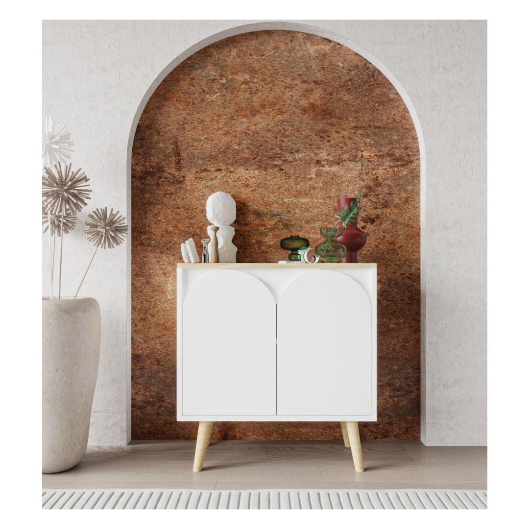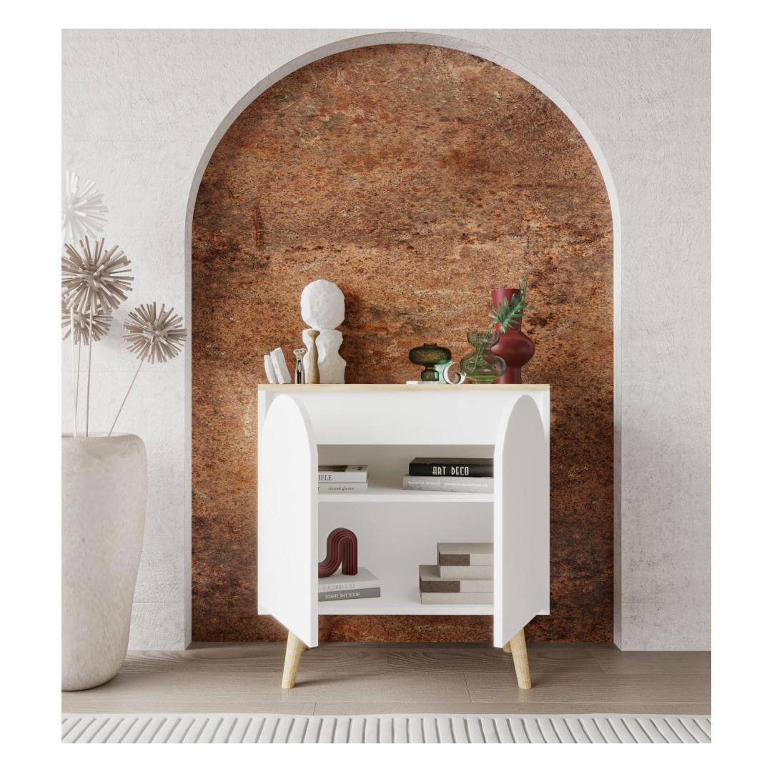 Muuda oma eluruum meie kauni konsooliga, mis on valmistatud 100% melamiinkattega puitlaastplaadist, et tagada vastupidavus ja stiil. Sujuv disain sisaldab elegantseid puidust jalgu, mis on 20 cm kõrged, lisades igasse ruumi natuke rafineeritust. 30 kg kandevõimega riiul võimaldab sul hõlpsasti eksponeerida oma lemmik dekoratiivesemeid.