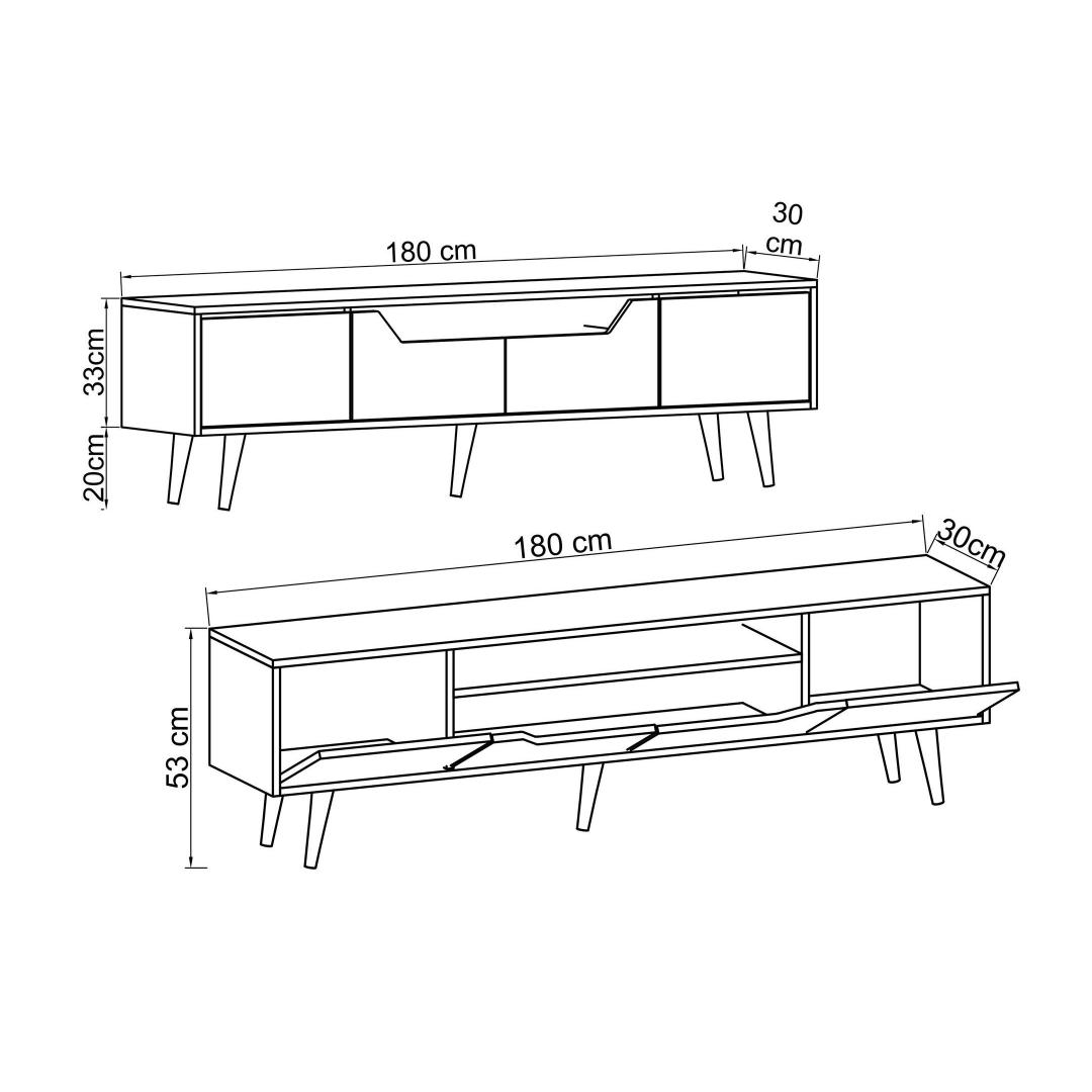 See telerialus tuleb lahtivõetuna, muutes selle transportimise ja igas toas kokkupanemise lihtsaks. Laius on 180 cm, kõrgus 48 cm ja sügavus 29,8 cm, mis teeb sellest ideaalse suuruse enamikesse eluruumidesse.