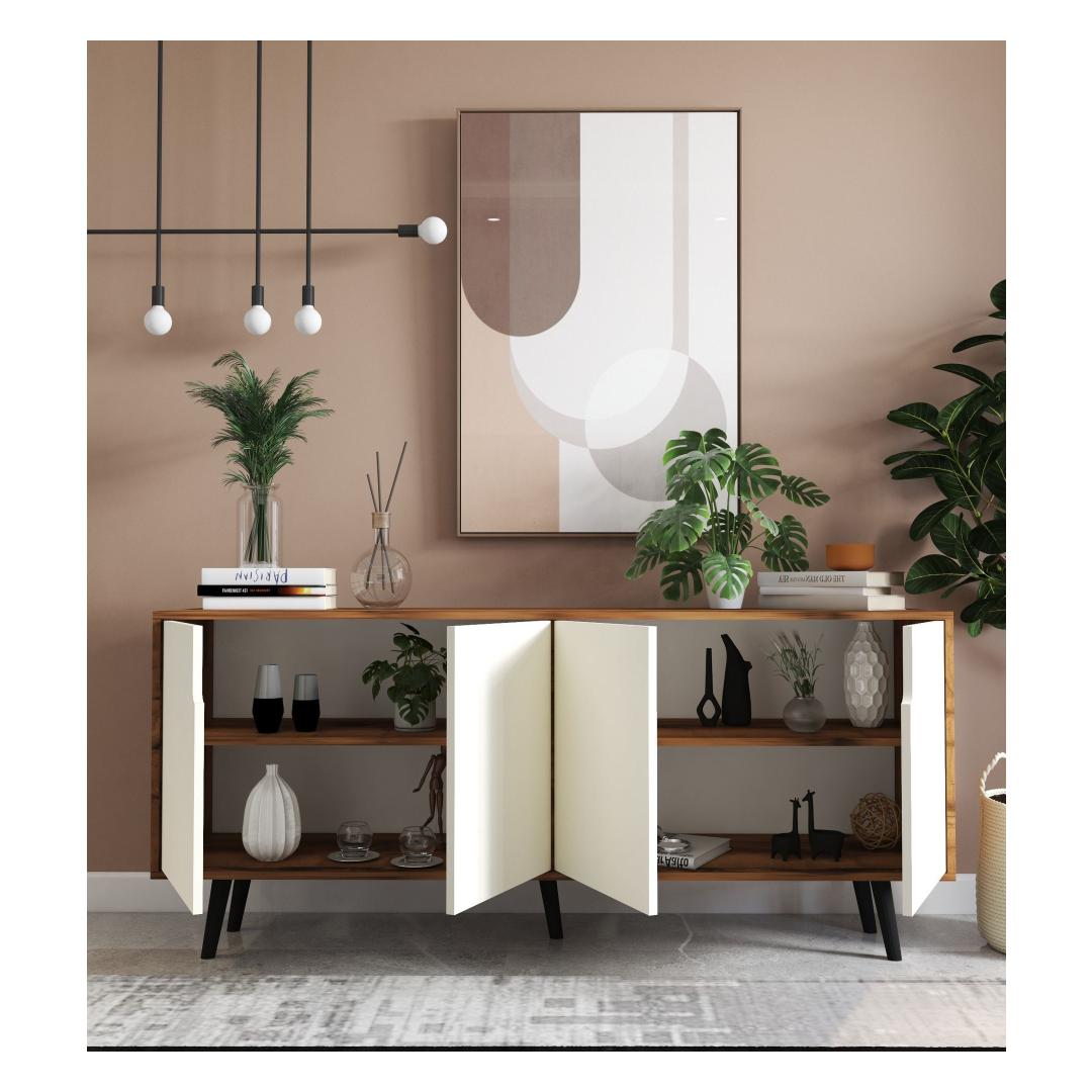 Muuda oma eluruum meie kauni konsooliga, mis on valmistatud 100% melamiinkattega puitlaastplaadist ja elegantsetest puidust jalgadest. Sujuv disain ja avarad riiulid teevad sellest ideaalse valiku, et eksponeerida oma lemmik dekoratiivesemeid või hoida olulisi asju.