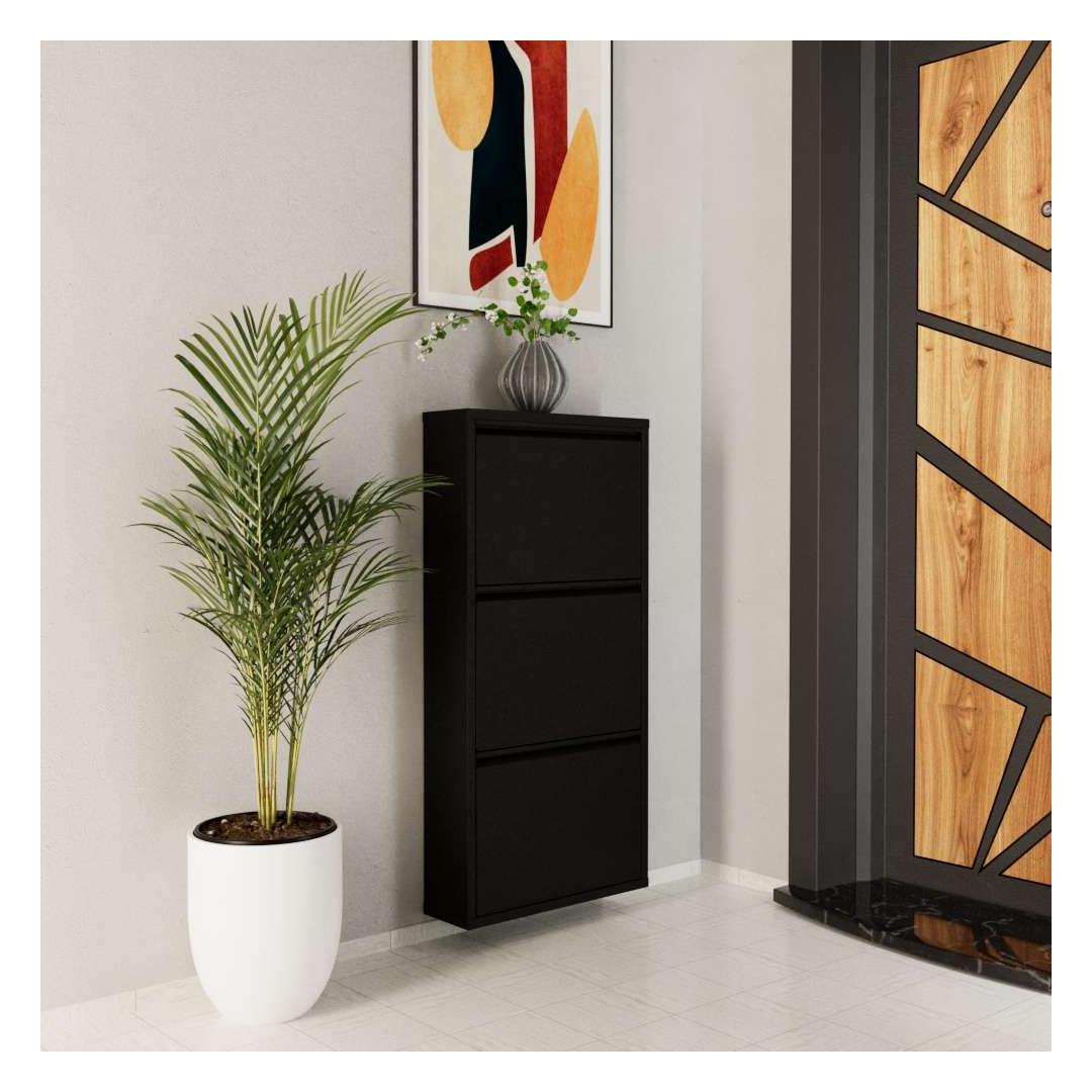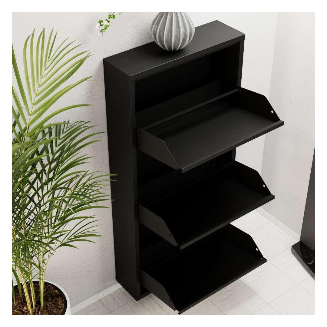 Selle musta värvi kingakapp lisab igasse ruumi elegantsi, samas kui võimalus see seina külge kinnitada tagab stabiilsuse ja ohutuse. Ütle hüvasti segastele põrandatele ja tere korralikule ja organiseeritud ruumile meie kingakapiga.