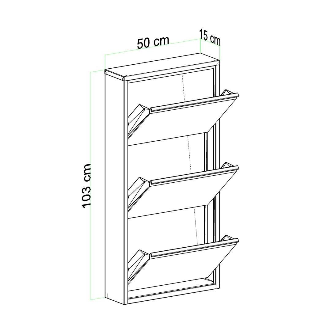 50 cm laiuse, 103 cm kõrguse ja 15 cm sügavusega kingakapp on ideaalne suurus igasse esikusse või koridori. Keskelt avanevad uksed magnethoidikutega teevad kingadele ligipääsu lihtsaks, hoides neid samal ajal kindlalt paigal.