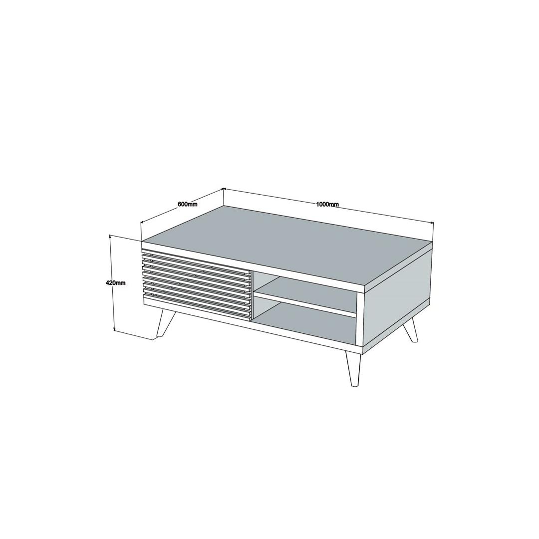 100 cm laiuse, 42 cm kõrguse ja 60 cm sügavusega kohvilaud pakub piisavalt pinda kõigi teie vajaduste rahuldamiseks. Olenemata sellest, kas korraldate sõpradega koosviibimist või naudite vaikselt tassi kohvi, pakub see laud ideaalset platvormi teie jookide, suupistete ja hinnatud dekoratsiooniesemete jaoks.