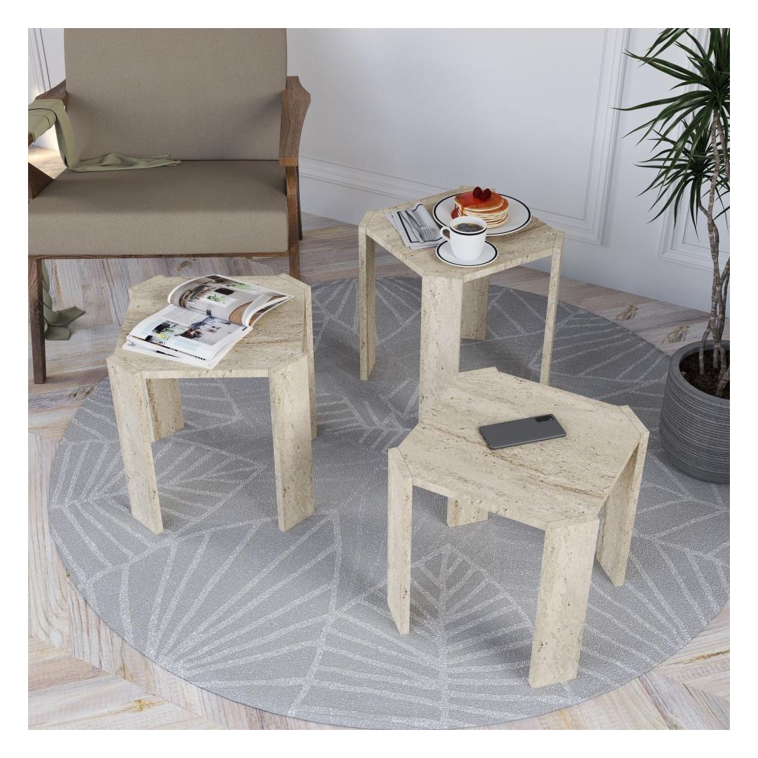 Need pesakond lauad tulevad kolmes erinevas kõrguses, võimaldades teil luua oma kodus ainulaadse ja mitmekesise väljapaneku. Olgu need külglauad, taimealused või lihtsalt dekoratiivne aksessuaar, need lauad tõstavad kindlasti iga ruumi.