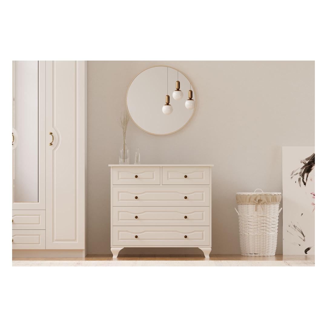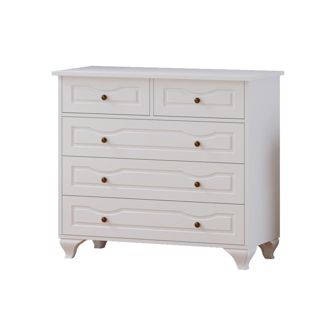 Muuda oma magamistuba stiilseks ja organiseeritud pühamuks meie kauni kummutiga. See kummut ei ole lihtsalt mööbliese, vaid elegantsi ja rafineerituse väljendus. Sujuv disain ja matt valge värv tõstavad koheselt teie ruumi ilmet, samas kui avar hoiuruum aitab hoida teie asjad korras ja puhtad.