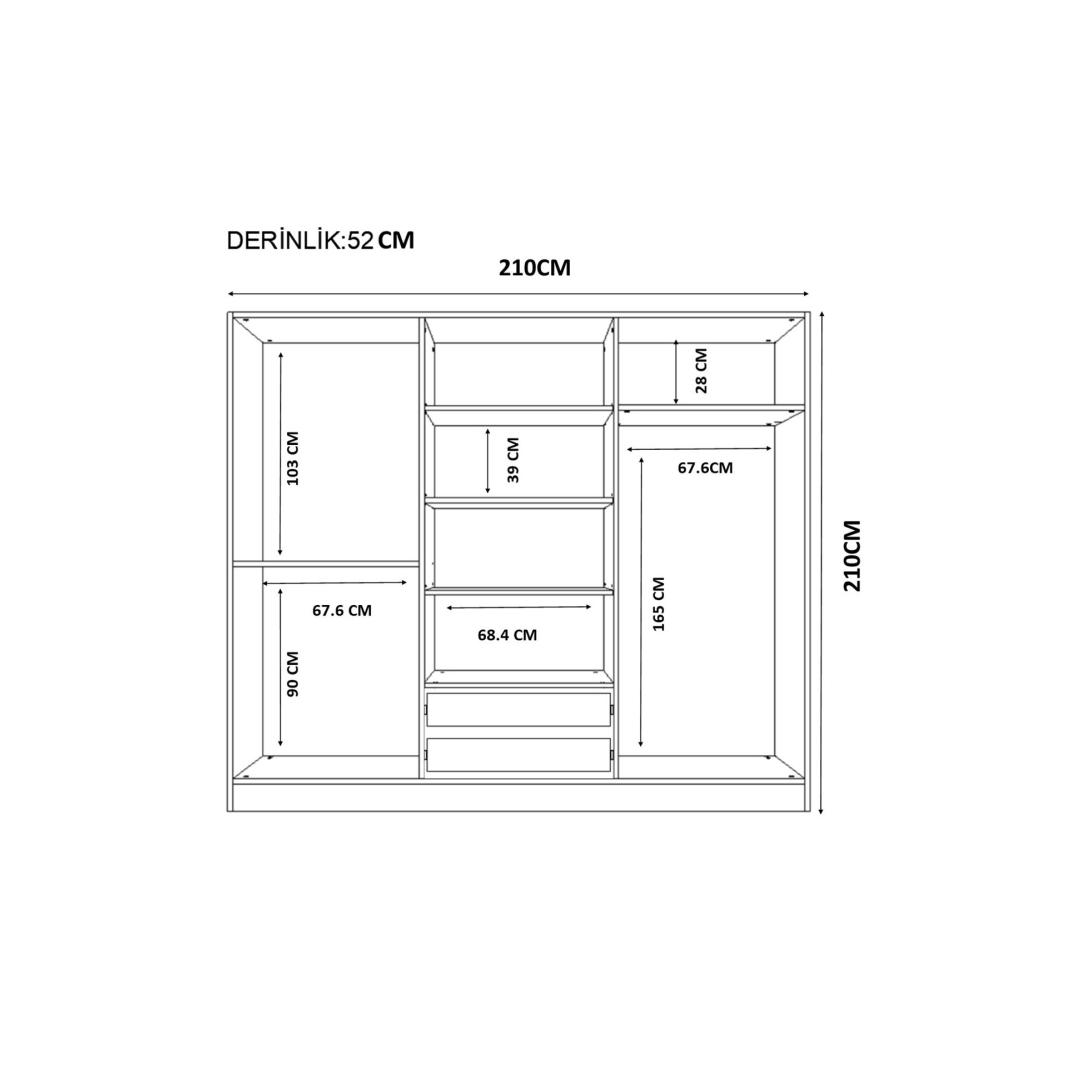 Width: 210 cm Height: 210 cm Depth: 52 cm