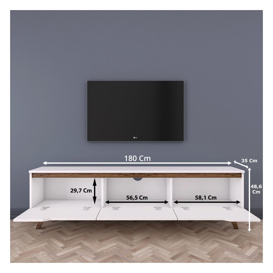 See teleripult ei paku mitte ainult rohkelt hoiustamisvõimalusi, vaid on ka uskumatult mitmekülgne. Tänu oma moodsale ja uudsele disainile sobib see igasse sisustusstiili, olgu see siis kaasaegne või traditsiooniline seade. Valge ja pähklipuu värvi kombinatsioon lisab teie eluruumile soojust ja rafineeritust, luues hubase ja kutsuva atmosfääri.