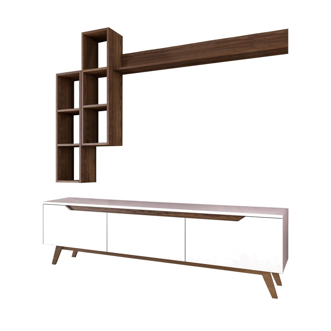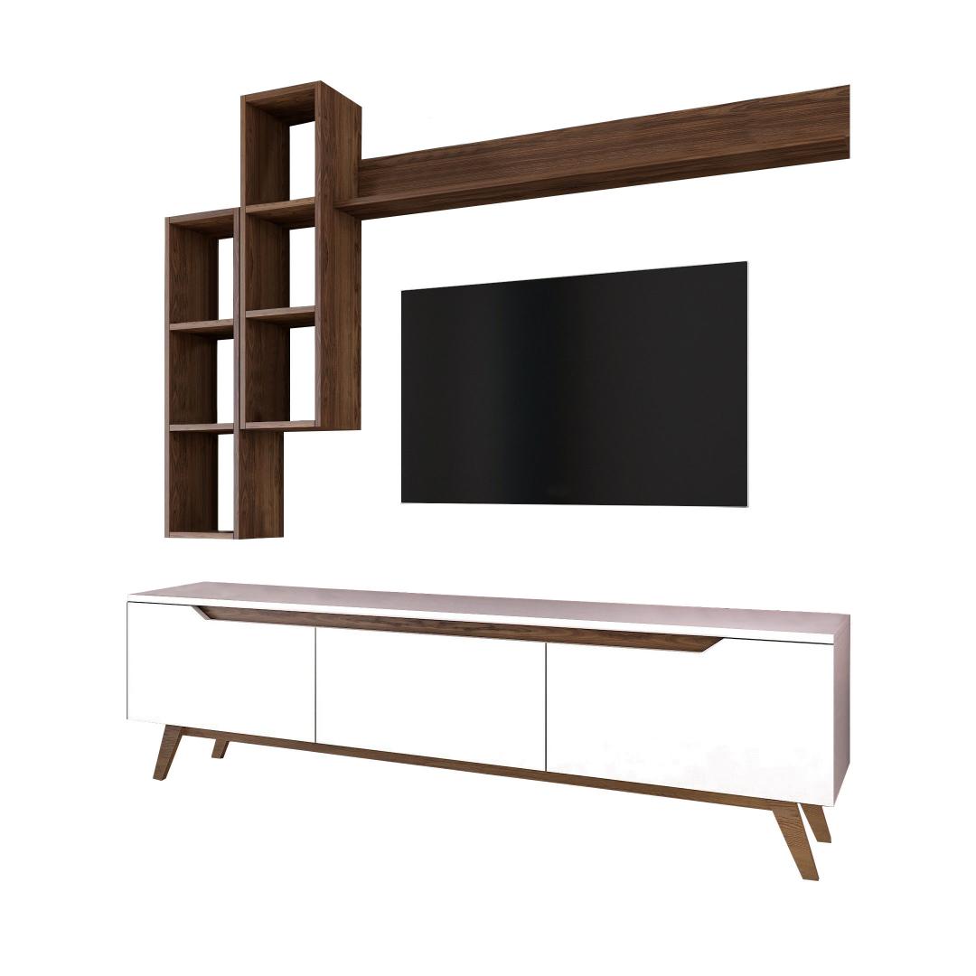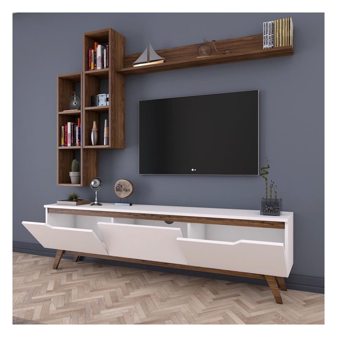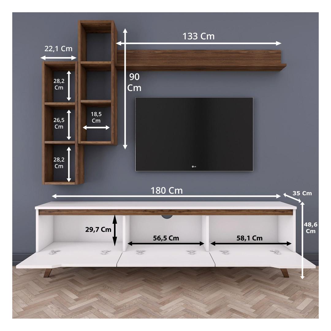 Meie telerikomplekt ei ole lihtsalt eraldiseisev mööblitükk. Seda saab kinnitada seina külge, mis võimaldab teil säästa väärtuslikku põrandapinda ja luua oma toas avatuma ja avarama tunde. Kaasasolevad seinariiulid pakuvad veelgi rohkem hoiuvõimalusi ja neid saab paigutada vastavalt teie isikliku stiili järgi.