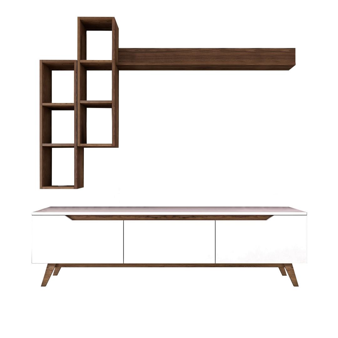 Meie teleriboks lisab oma elegantse ja minimalistliku skandinaavia disainiga igale ruumile elegantsust. Valge ja pähklipuu värvi kombinatsioon loob moodsa ja ajatu välimuse, mis sobitub vaevata mis tahes sisustusstiiliga.