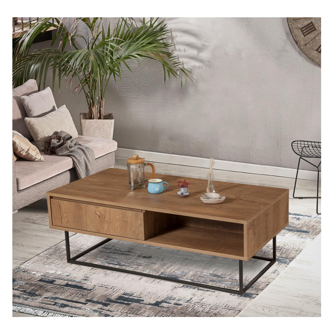 See tööstusrevolutsioonist inspireeritud kohvilaud kehastab selle kontseptsiooni olemust. Selle tugev konstruktsioon ja metallraam on austusavaldus ajastu tugevusele ja vastupidavusele, samas kui melamiiniga kaetud puitlaastplaat lisab sellele kaasaegse vindi.