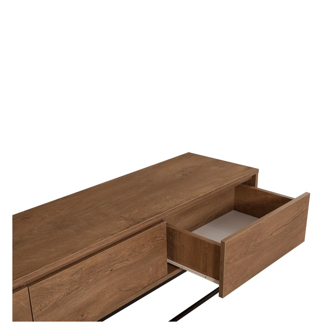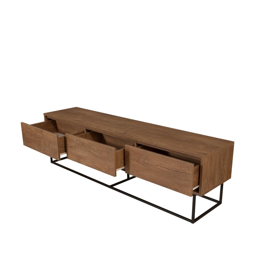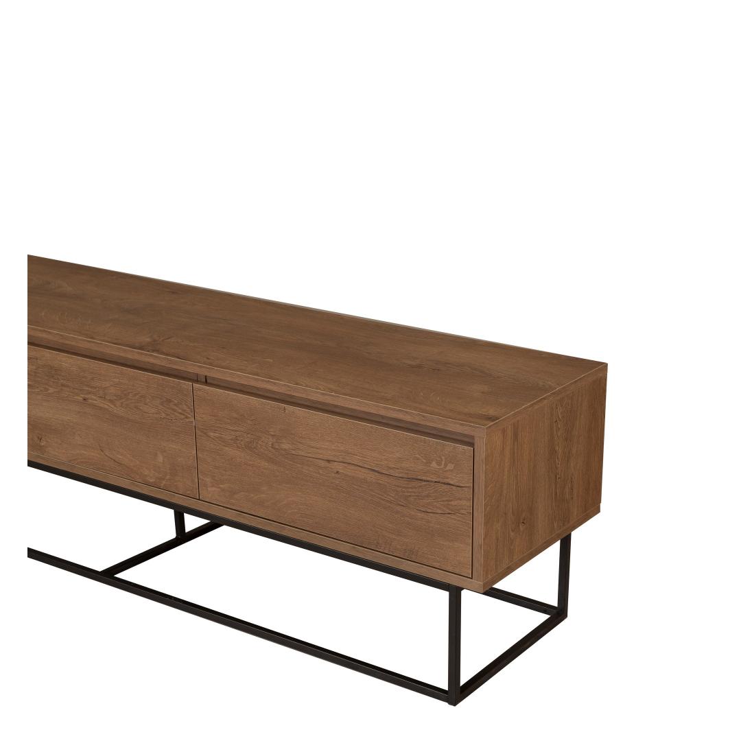 Muuda oma elutuba hubaseks ja kutsuvaks ruumiks meie televiisoriga. Valmistatud 100% melamiiniga kaetud puitlaastplaadist, ei ole see statiiv mitte ainult vastupidav, vaid lisab ka elegantsi teie kodu sisustusele. Selle stiilne metallraam lisab kaasaegset tooni, mistõttu sobib see ideaalselt igasse moodsasse või tööstuslikus stiilis tuppa.