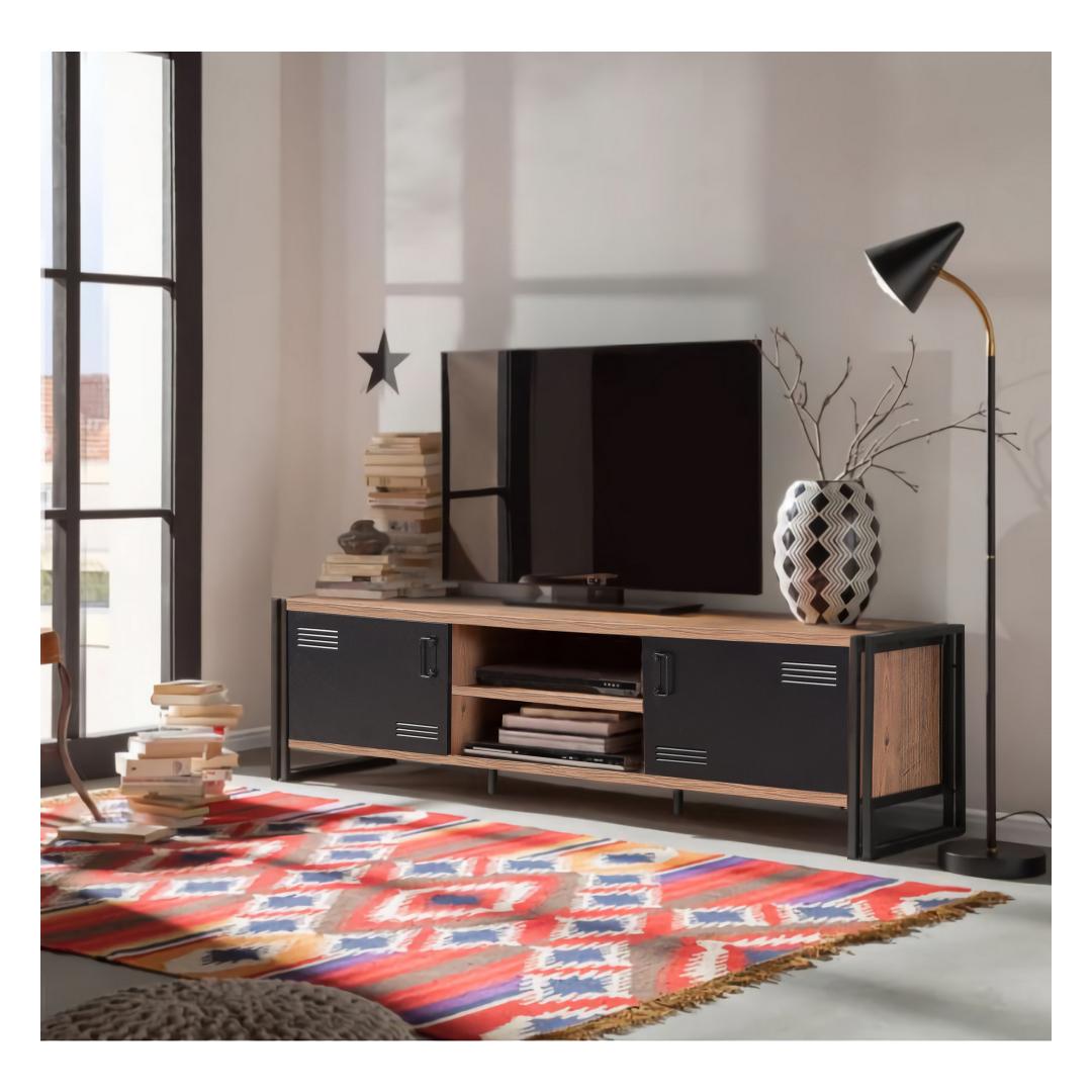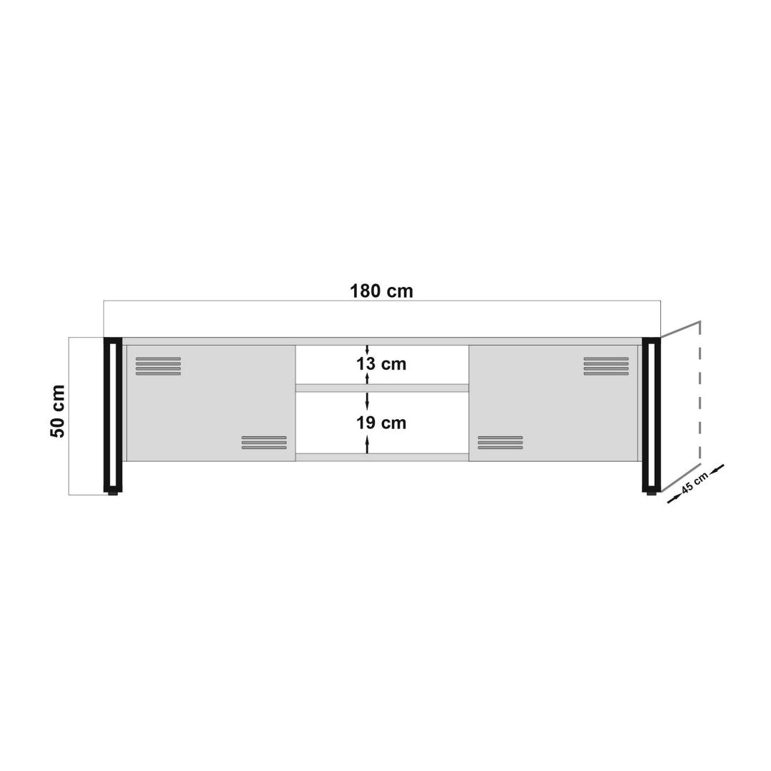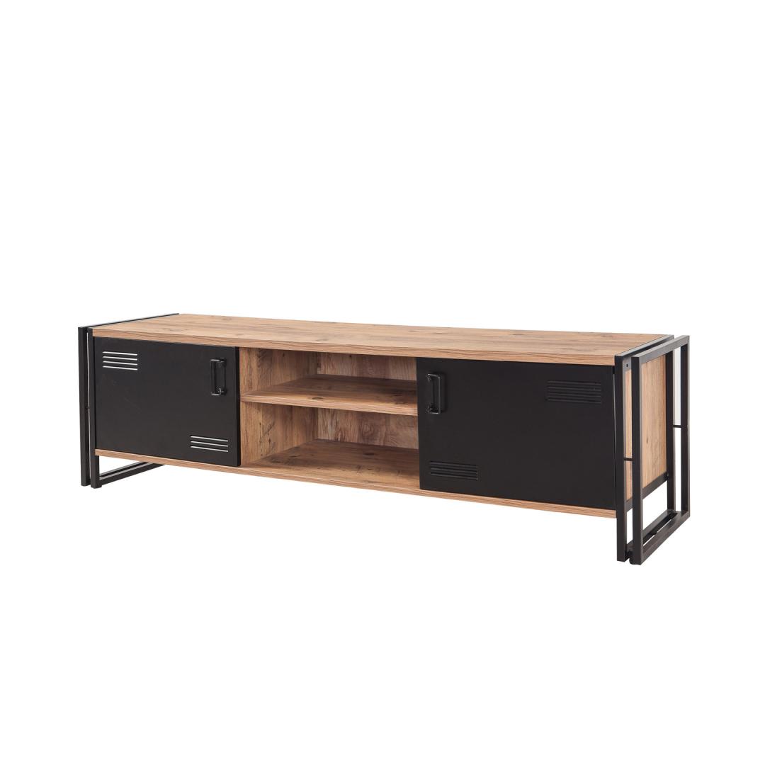 Meie teleripuldi metallist uksed ja käepidemed on elegantse ja moodsa tööstusliku sarmiga. Atlandi männi ja mustade värvide kombinatsioon lisab igasse tuppa elegantsi. 180 cm laiuse, 50 cm kõrguse ja 45 cm sügavusega statiiv pakub piisavalt ruumi teie telerile ja muudele tarvikutele. Arvukad riiulid ja riiulide kõrgus 16 cm pakuvad mugavat hoiukohta teie meediaseadmetele, mängukonsoolidele, dvd-dele ja muule.