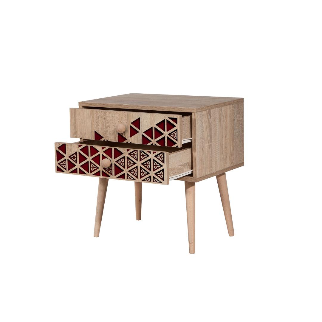 Meie öökapil on uv-kattega uhke sonoma-tamme värv, mis sulandub vaevata iga sisustusstiiliga. Disaini abstraktne, kaasaegne kontseptsioon lisab teie magamistuppa uudsust ja ainulaadsust. Kaks mahukat sahtlit pakuvad rohkelt hoiuruumi, mis võimaldab teil hoida oma hädavajalikke asju organiseeritult ja käeulatuses.