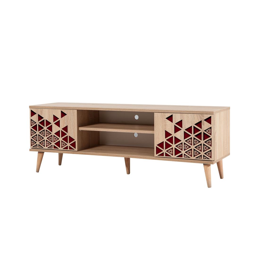 Sarvepuu jalgade, metallist ja köiega käepidemete abil paistab meie televiisoristend välja oma unikaalse ja pilkupüüdva disainiga. Uv-kate lisab läikiva viimistluse, mis suurendab üldist esteetilist atraktiivsust. Sonoma tamme värvus lisab igasse ruumi soojust ja elegantsi, luues hubase ja kutsuva atmosfääri.