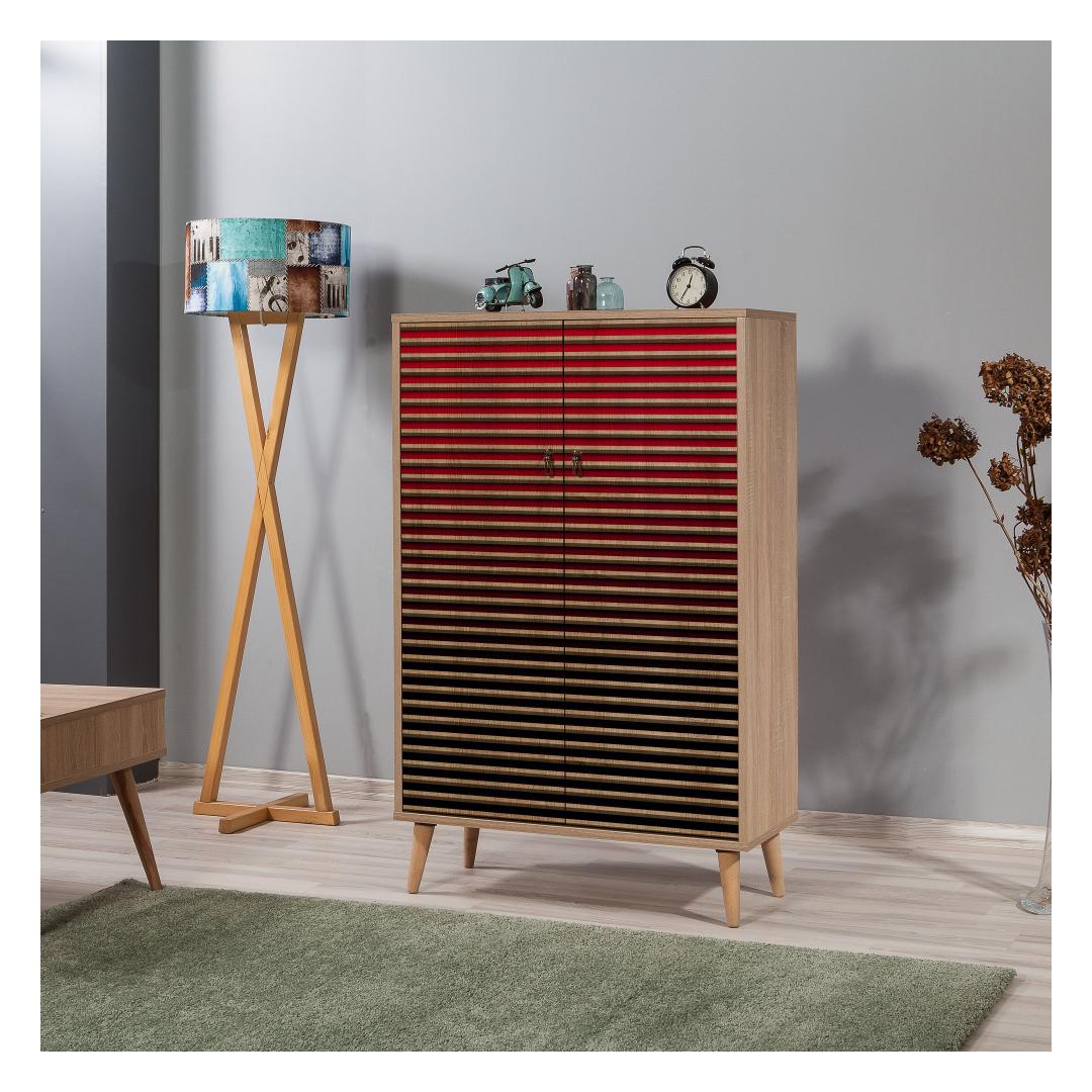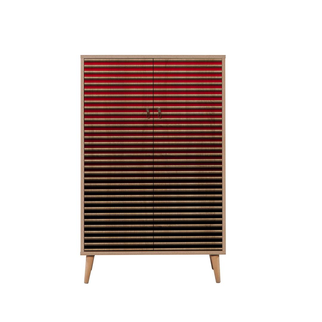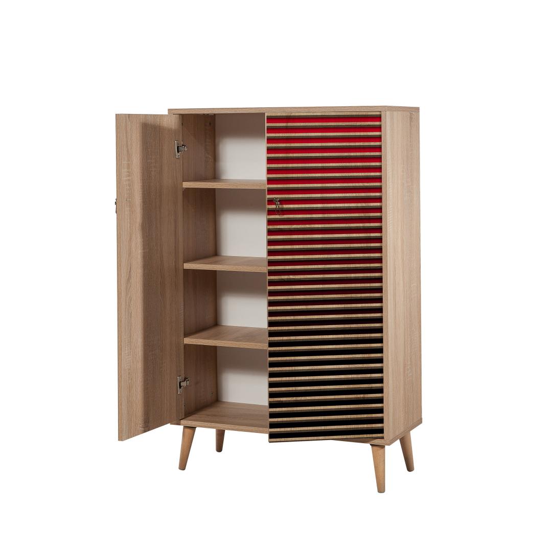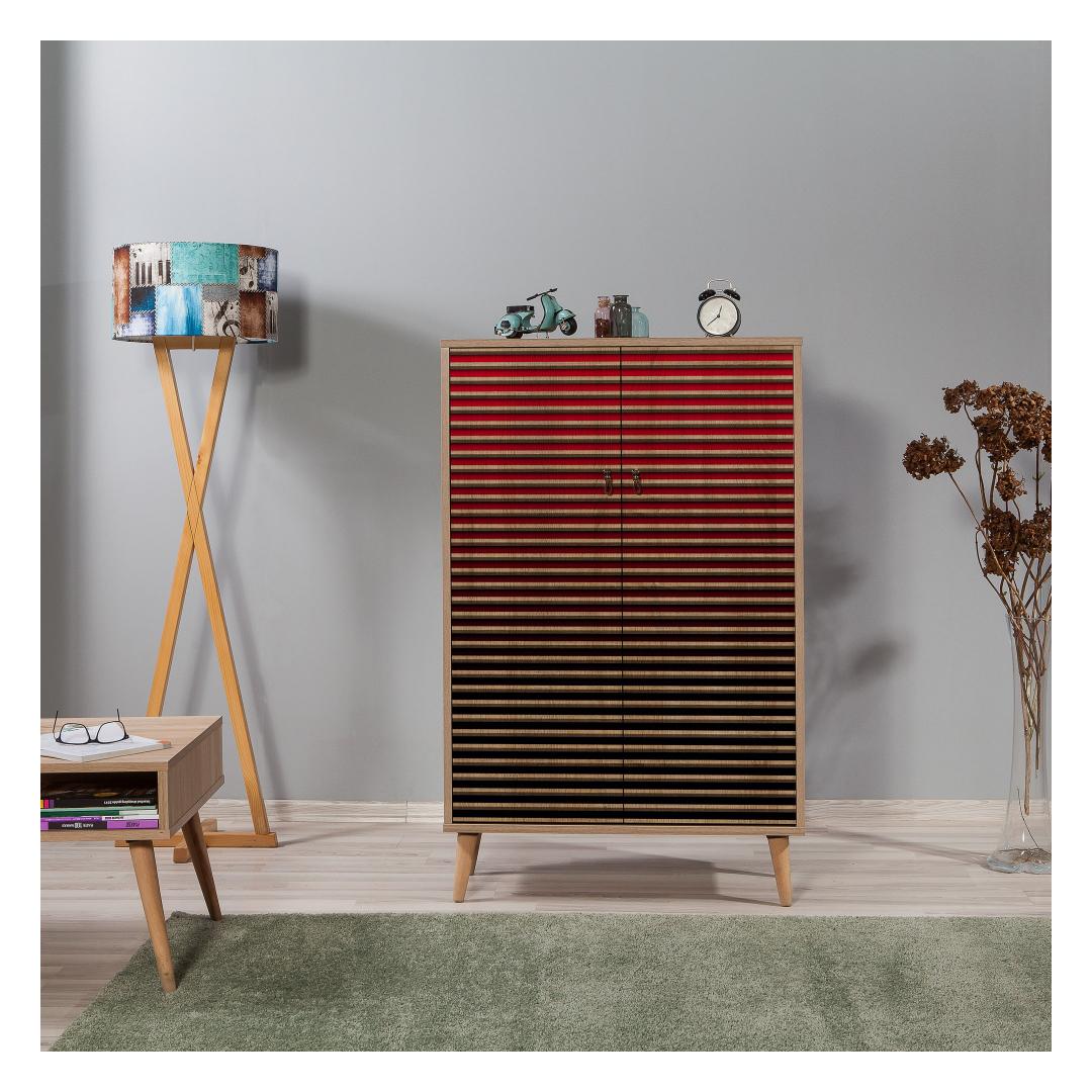 Valmistatud 100% melamiiniga kaetud puitlaastplaadist, mille paksus on 18 mm, on meie kapp ehitatud kestma. Sarvepuu jalad tagavad stabiilsuse ja vastupidavuse, tagades, et teie asjad on turvaliselt ja kindlalt paigas. Metallist ja köiega käepidemed lisavad elegantsust ja muudavad kapi uste avamise ja sulgemise lihtsaks.