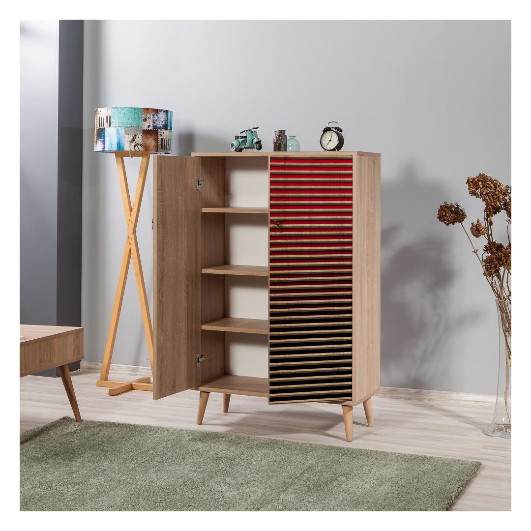 Arvukate riiulitega kapp pakub palju ruumi oma asjade hoidmiseks. Alates raamatutest ja fotoalbumitest kuni dekoratiivsete esemete ja esmatarbekaupadeni - kõik leiab oma koha. Reguleeritav riiulide kõrgus võimaldab teil kohandada hoiuruumi vastavalt teie vajadustele.