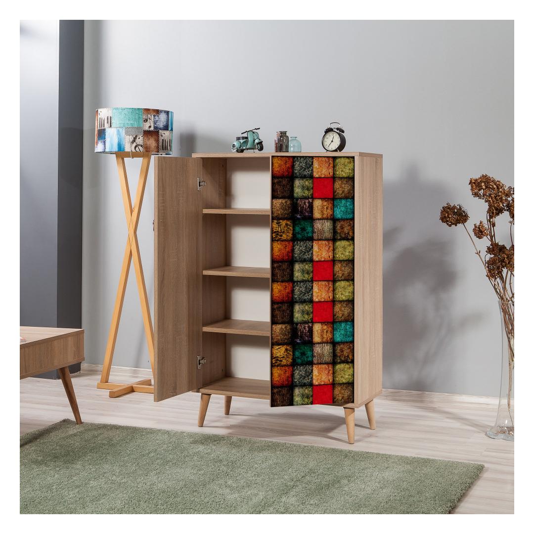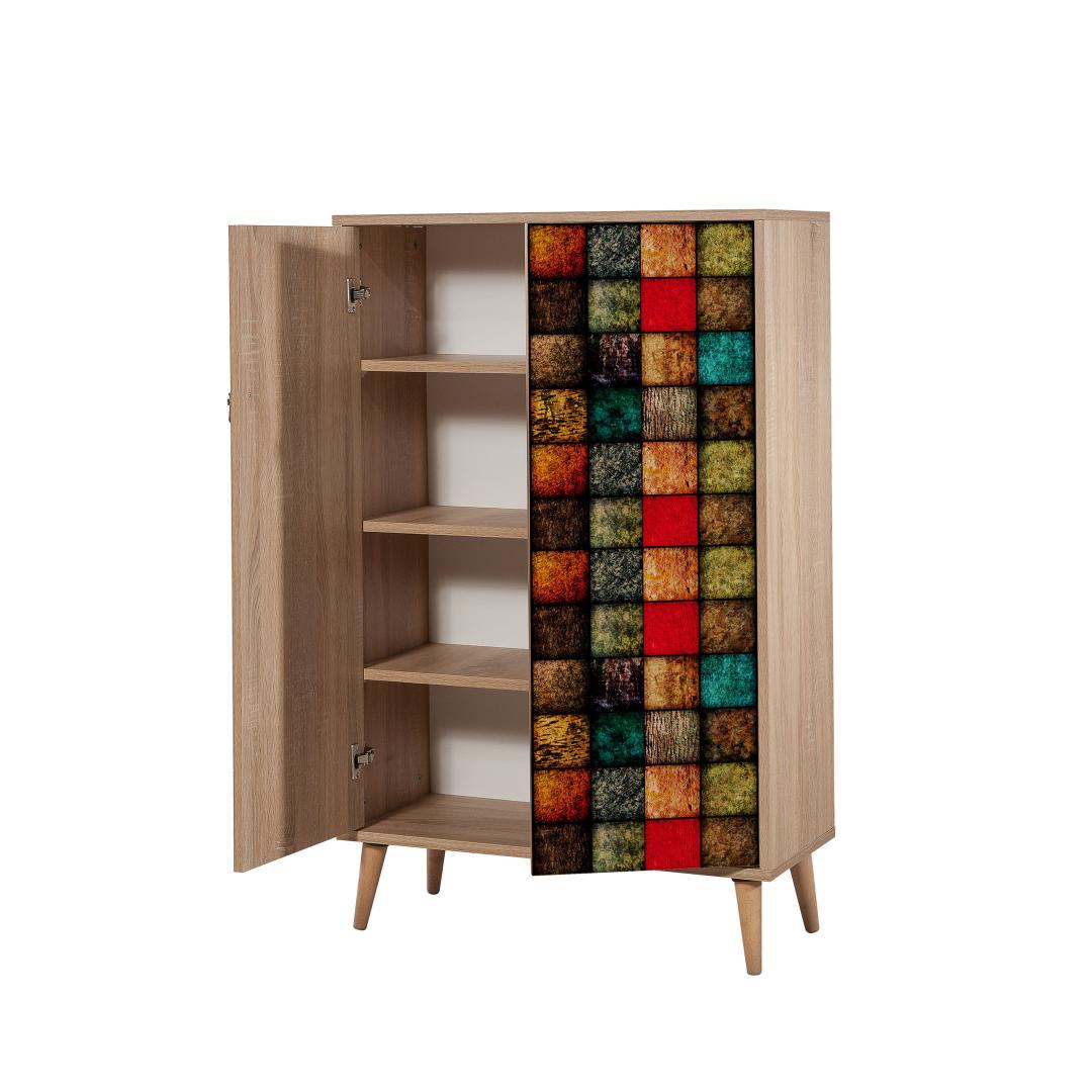 See kapp ei paku mitte ainult rohkelt ruumi, vaid seda saab ka seinale kinnitada, et lisada stabiilsust ja turvalisust. Selle abstraktne, modernne disain sonoma tammevärvi(de)ga lisab igasse ruumi uudsust ja edelamaist võlu.