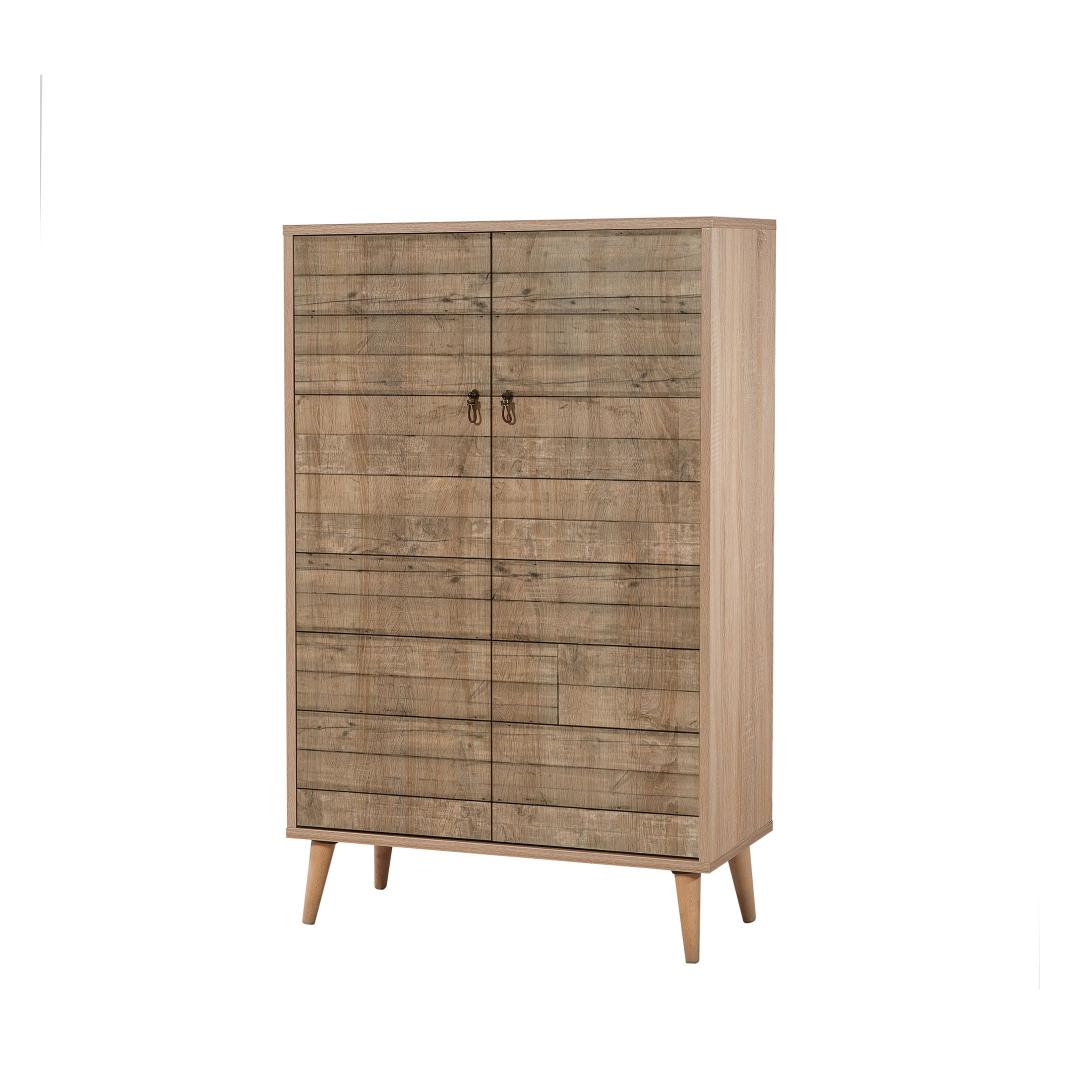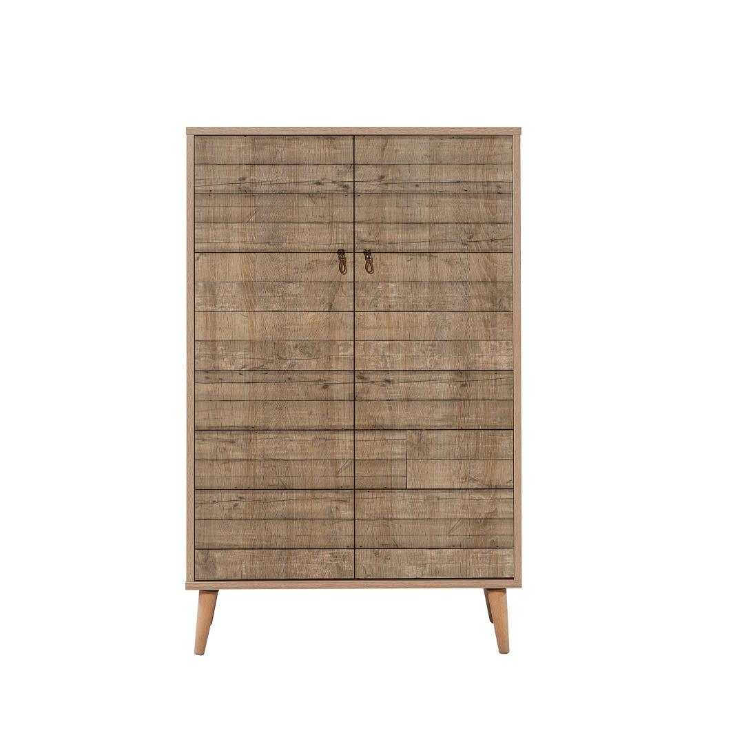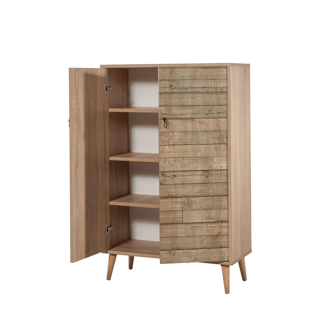 See 100% melamiiniga kaetud puitlaastplaadist valmistatud kapp on valmistatud kestma. 18 mm paksus tagab tugevuse ja stabiilsuse, mistõttu sobib see ideaalselt kõigi teie oluliste asjade hoidmiseks. Sarvepuust jalad pakuvad täiendavat tuge, samal ajal kui metallist ja köiega käepidemed lisavad stiilset puudutust.