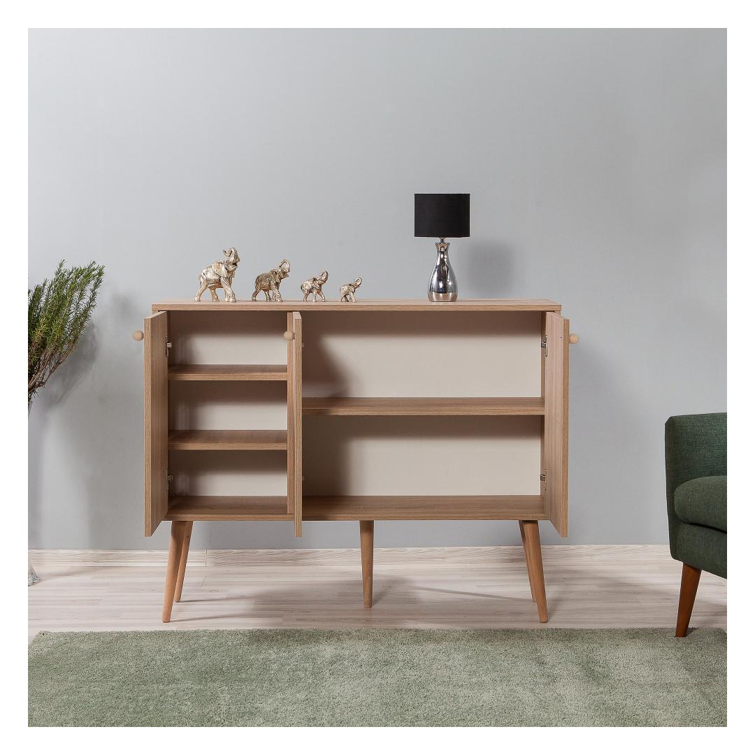 Tänu arvukatele riiulitele ja täiendavatele hoiuvõimalustele pakub see konsool piisavalt ruumi, et hoida oma asjad korrastatult ja käeulatuses. Parempoolne riiul, mille laius on 77,6 cm ja kõrgus 27 cm, ning vasakpoolne riiul, mille laius on 38,8 cm ja kõrgus 17 cm, pakuvad mitmekülgsust teie lemmikdekoratsiooni esemete eksponeerimiseks.