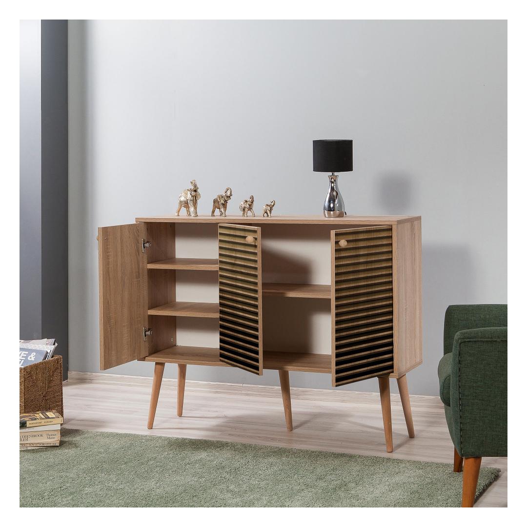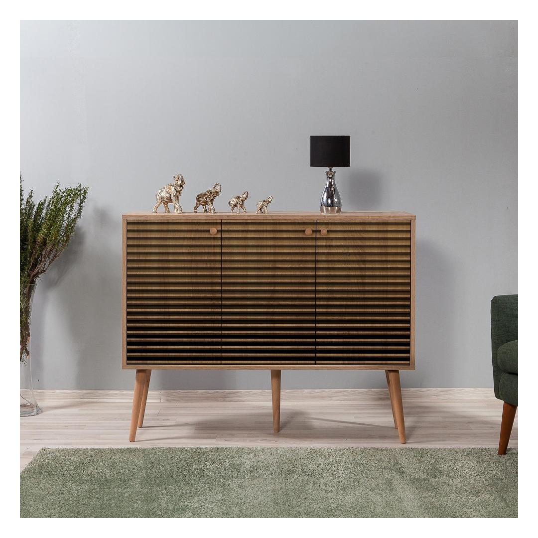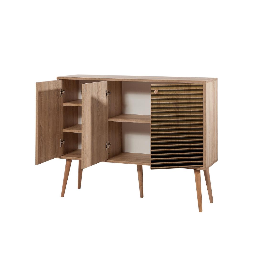 Muuda oma elutuba modernseks oaasiks meie abstraktse konsooliga. See 100% melamiiniga kaetud puitlaastplaadist valmistatud konsool väljendab vastupidavust ja stiili. 18 mm paksus tagab tugeva konstruktsiooni, mis peab vastu.