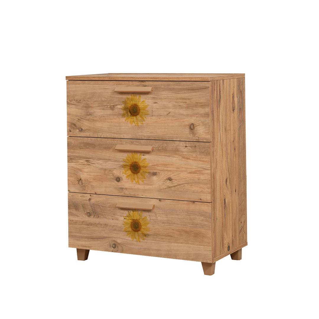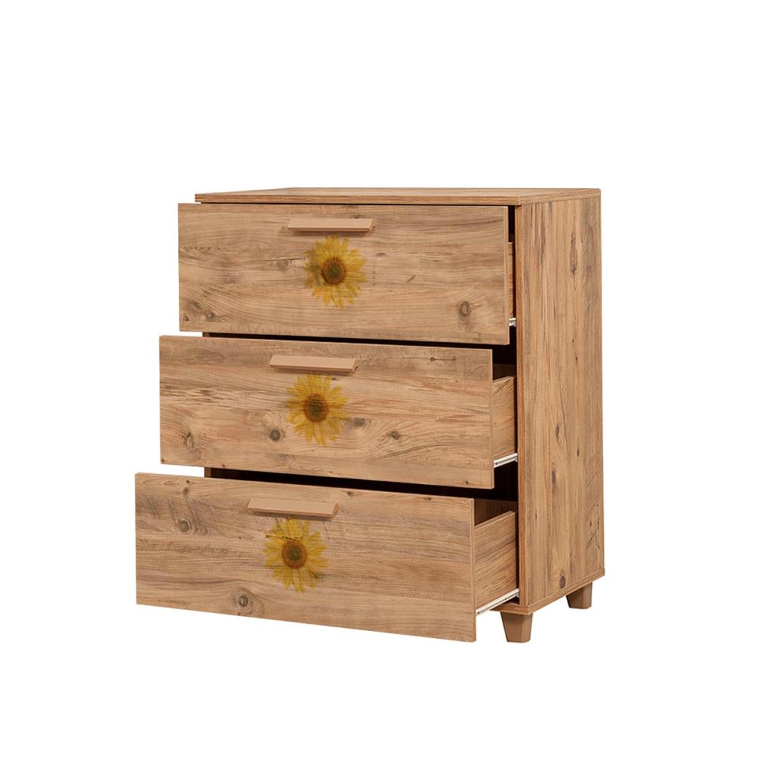 Mdf-käepidemed ja plastmassist jalad annavad sellele kabinetile kaasaegse ja rafineeritud võlu. Atlandi männi värvus lisab igasse ruumi soojust ja elegantsi, luues külalislahke ja kutsuva atmosfääri. Selle ainulaadne kontseptsioon, mis on inspireeritud impressionismist ja modernsest kunstist, lisab teie ruumile uudset ja kunstilist hõngu.