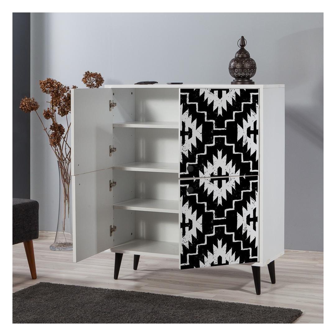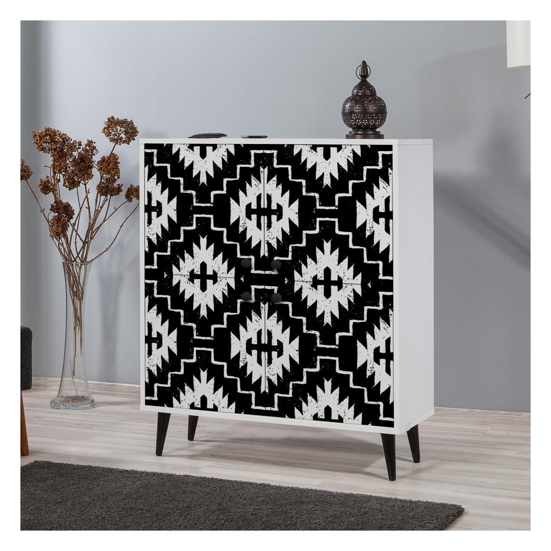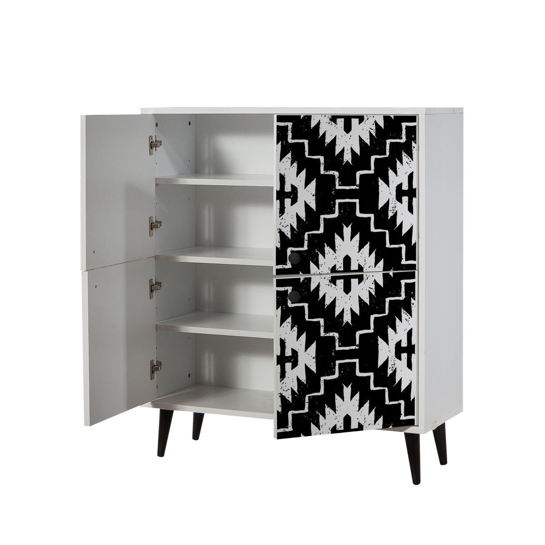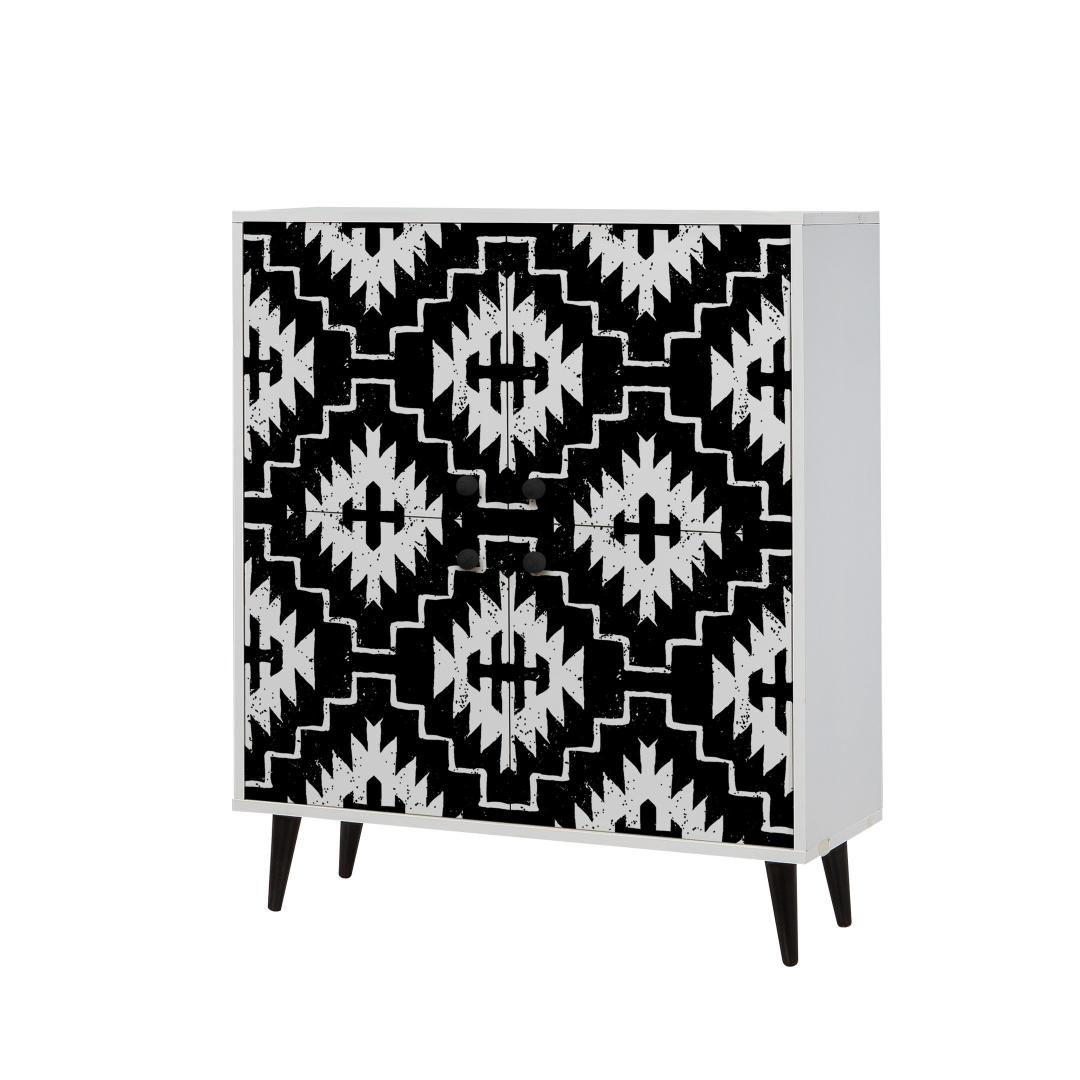 Oma abstraktse ja moodsa kontseptsiooniga on see kapp tõeline uudsus kodu sisustuse maailmas. Valge ja musta värvi kombinatsioon loob silmatorkava kontrasti, mis tõmbab koheselt pilgu igaühele, kes ruumi siseneb. Damaskimustrid lisavad elegantsust ja ainulaadsust.