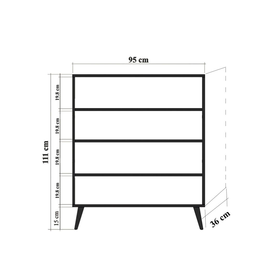 - Laius: 95 cm, kõrgus: 111 cm, sügavus: 36 cm