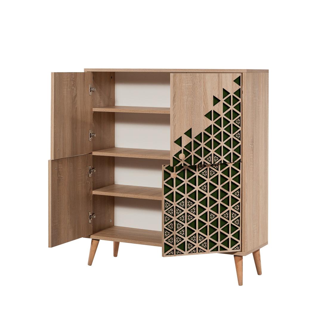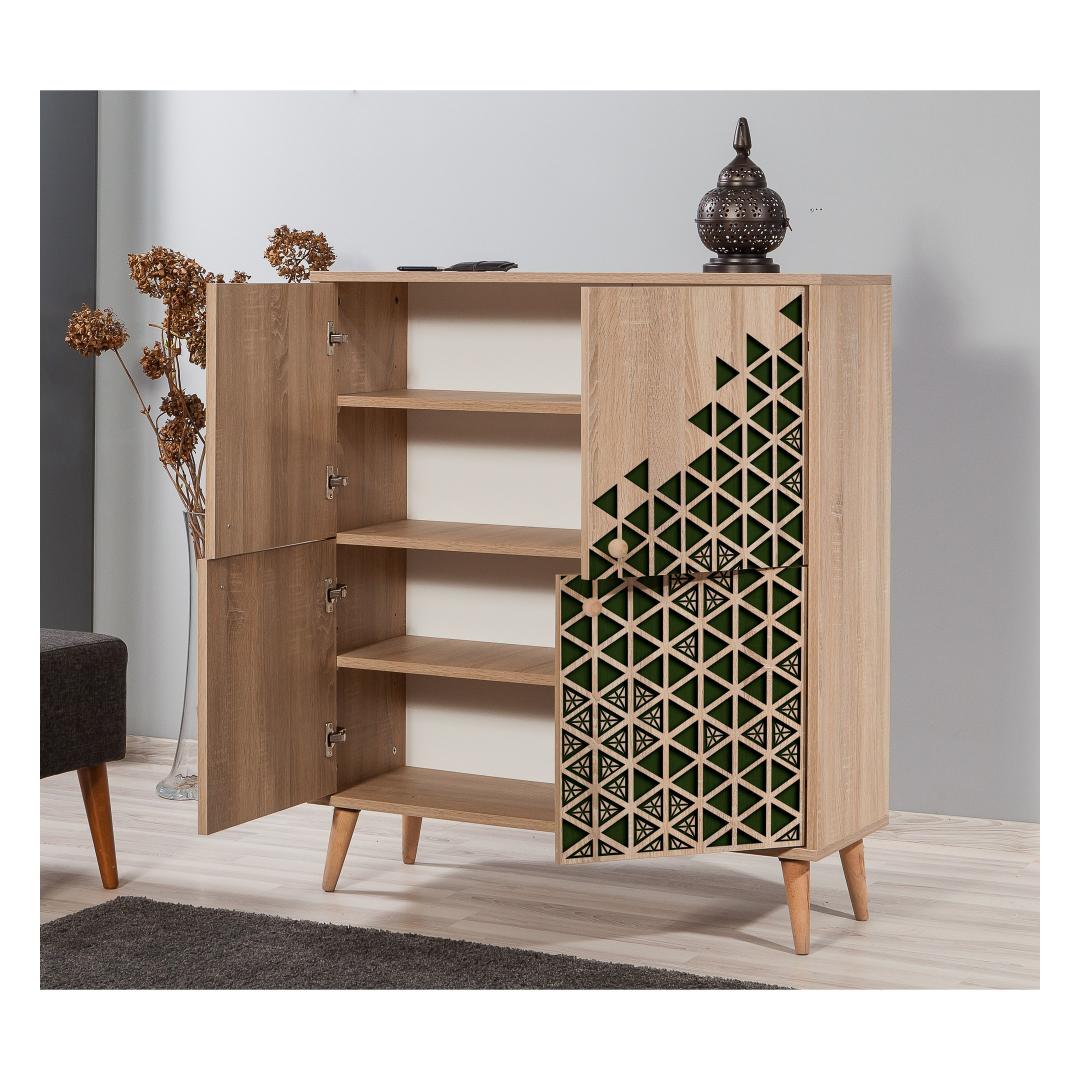 Selle kapi abstraktne, kaasaegne disain koos sonoma tamme värviga loob visuaalselt hämmastava eseme, mis täiendab vaevata iga sisekujundust. Olenemata sellest, kas teie stiil on edela-, argi-, geomeetriline või uudne, lisab see kapp teie ruumile rafineeritust ja võlu.