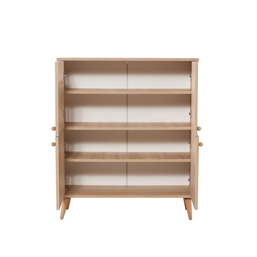 See 100% melamiiniga kaetud puitlaastplaadist valmistatud kapp on märkimisväärse 18 mm paksusega, mis tagab kauakestva vastupidavuse, mis peab vastu aja katsumusele. Sarvepuust jalad lisavad rafineeritust, samal ajal kui metallist ja köiega käepidemed annavad unikaalse ja stiilse aktsendi.