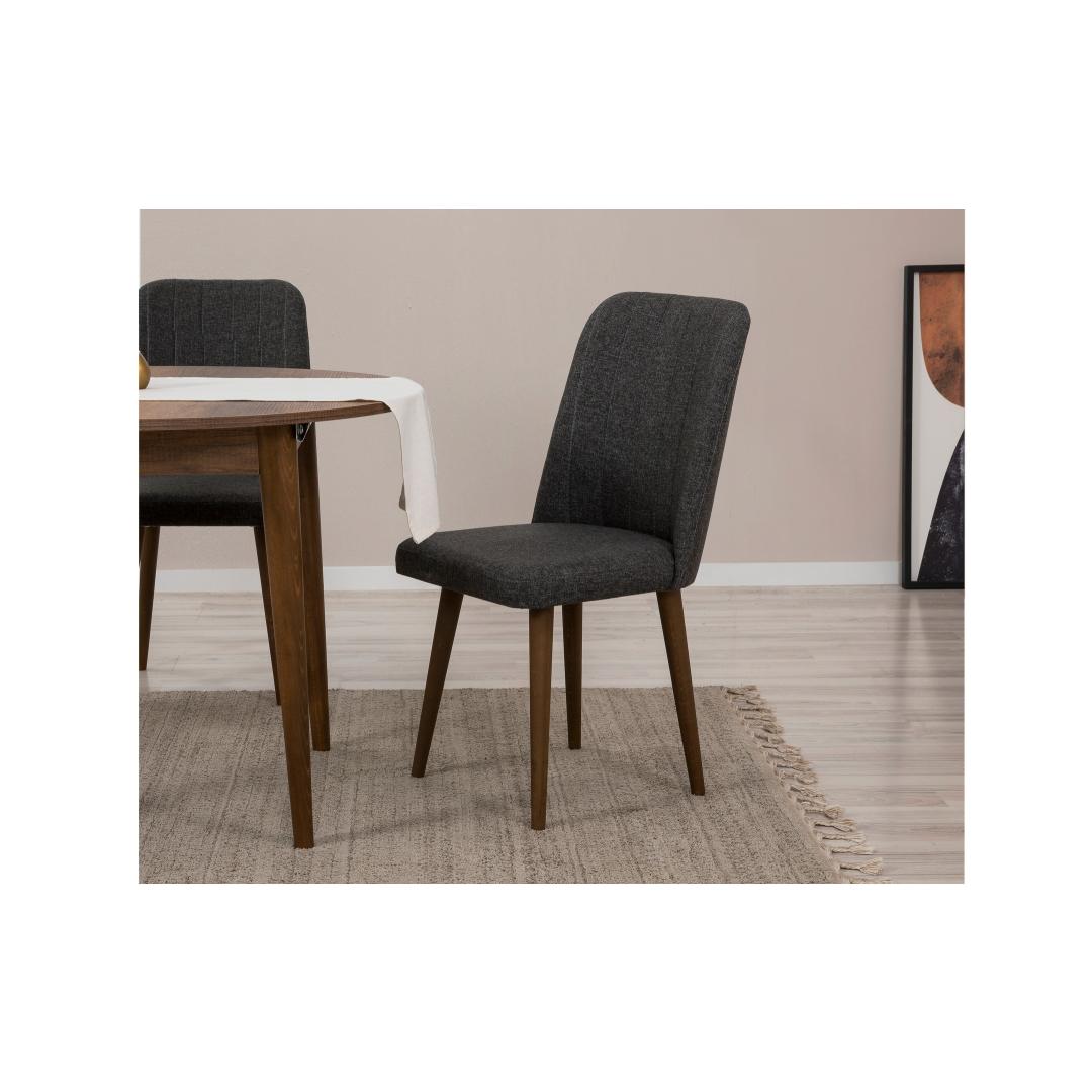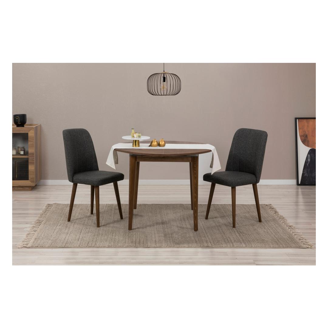 Valmistatud 100% melamiinkattega puitlaastplaadist, on see söögikomplekt mitte ainult vastupidav, vaid kiirgab ka modernset võlu, mis tõstab sinu söögitoa välimust. Pähkli- ja antratsiitvärvid lisavad igasse sisustusse peenust, muutes selle ideaalseks lisandiks igasse koju.