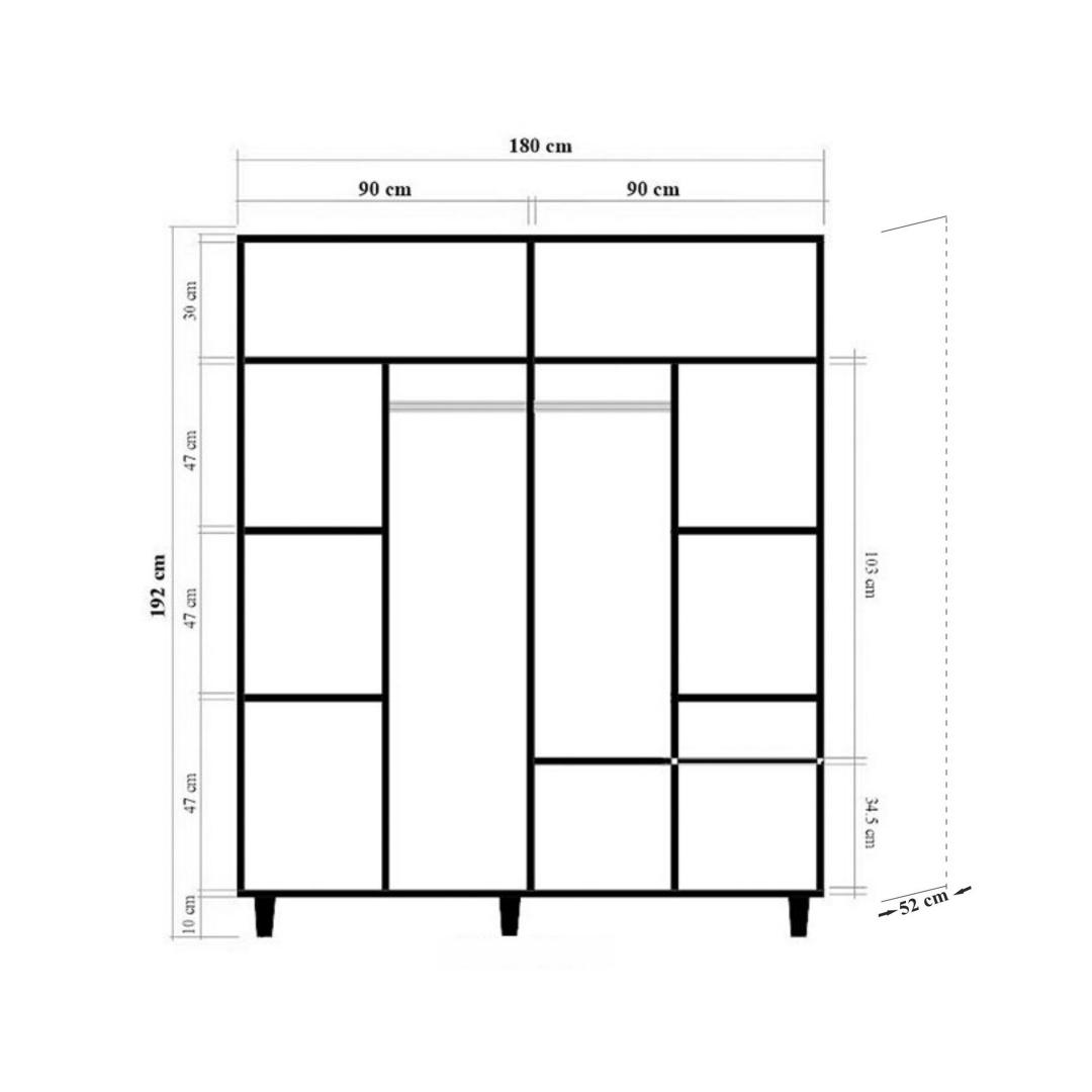 Valmistatud 100% melamiiniga kaetud puitlaastplaadist, see garderoob on ehitatud kestma. 18 mm paksus tagab tugevuse ja stabiilsuse, samas kui sarvepuust jalad pakuvad täiendavat tuge. Ütle hüvasti habrastele riidekappidele, mis ei pea vastu aja katsumusele.