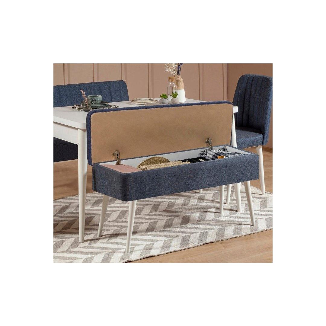 Toolid on polsterdatud 100% linasest kangast, mis tagab pehme ja luksusliku istumiskogemuse. Valge ja tumesinise värvi kombinatsioon lisab teie ruumile kaasaegset hõngu, muutes selle teie kodu keskpunktiks.