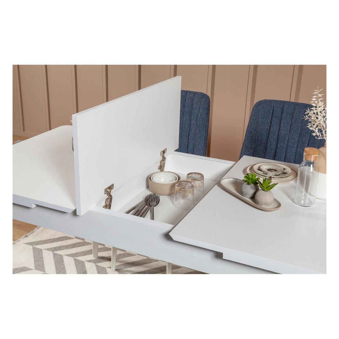 Looge oma söögitoas soe ja kutsuv atmosfäär meie suurepärase pikendatava söögilaua ja toolide komplektiga. Valmistatud 100% melamiiniga kaetud puitlaastplaadist, ei ole see komplekt mitte ainult vastupidav, vaid ka väljendab rafineeritust, mis tõstab teie söögikogemust.