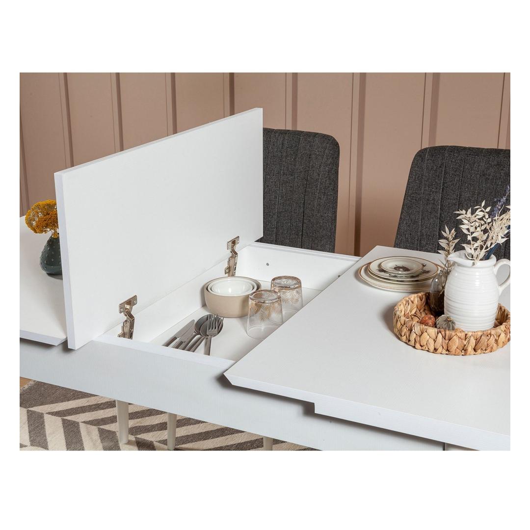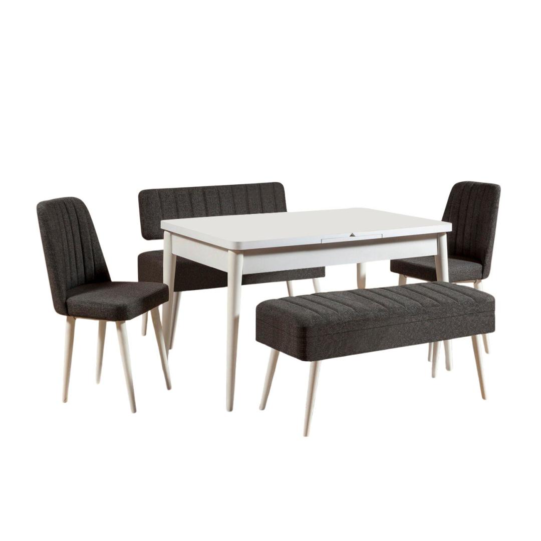 Meie söögilauakomplekt oma elegantse ja moodsa disainiga lisab igasse ruumi elegantsust. Laiendatav funktsioon võimaldab teil hõlpsasti majutada lisakülalisi, tagades, et kõik tunnevad end oodatuna ja kaasatuna.