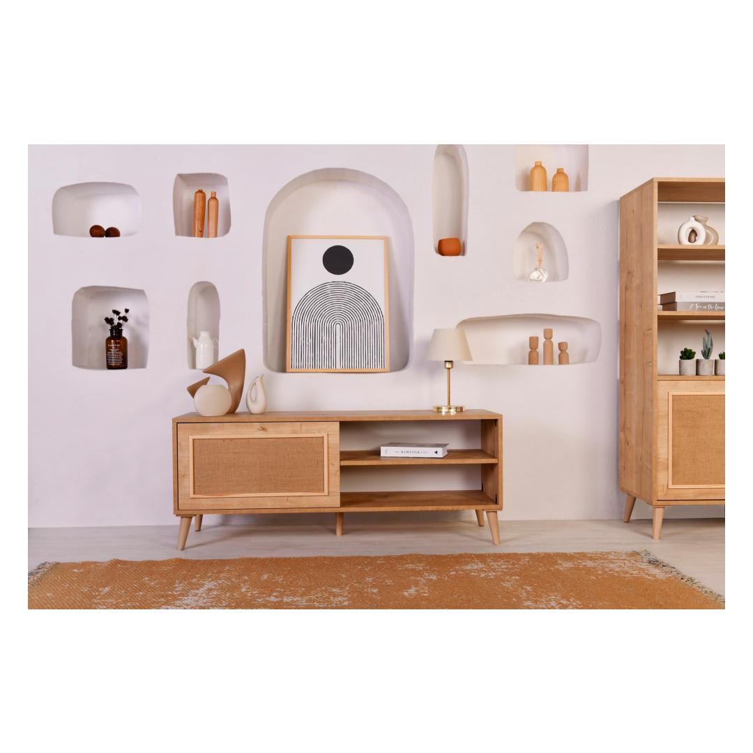 Valmistatud 100% melamiiniga kaetud puitlaastplaadist, see televiisoripult on ehitatud kestma. Melamiinkate mitte ainult ei suurenda selle vastupidavust, vaid lisab sellele ka kauni viimistluse, andes sellele esmaklassilise välimuse. Metalljalad tagavad suurepärase stabiilsuse ja toe, tagades, et teie teler ja muud meediaseadmed on turvaliselt paigas.