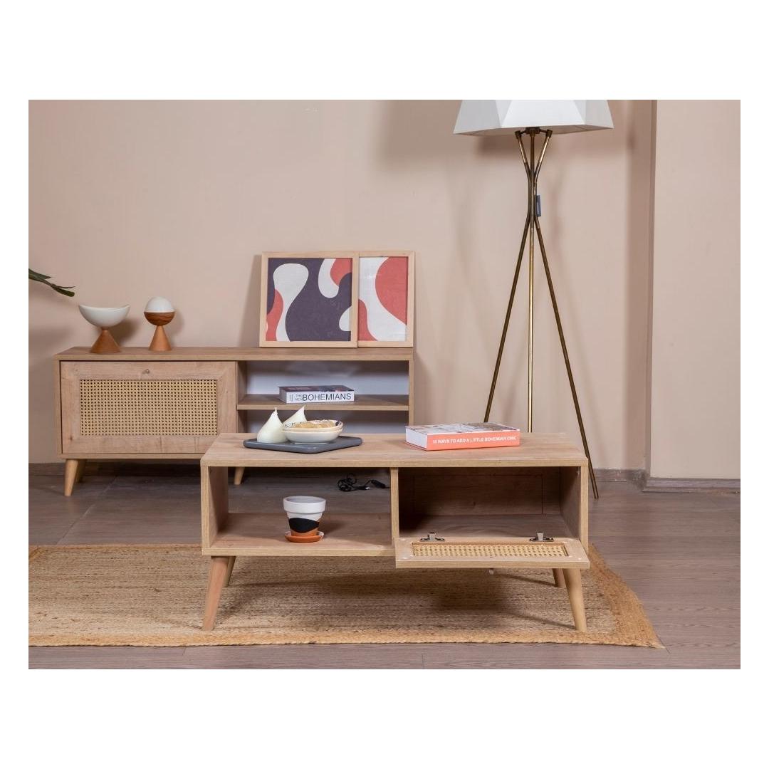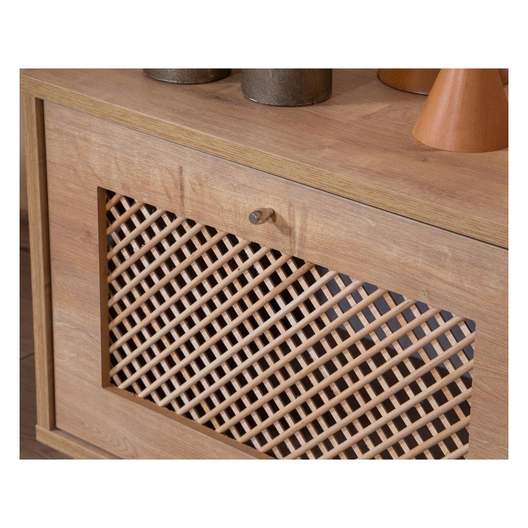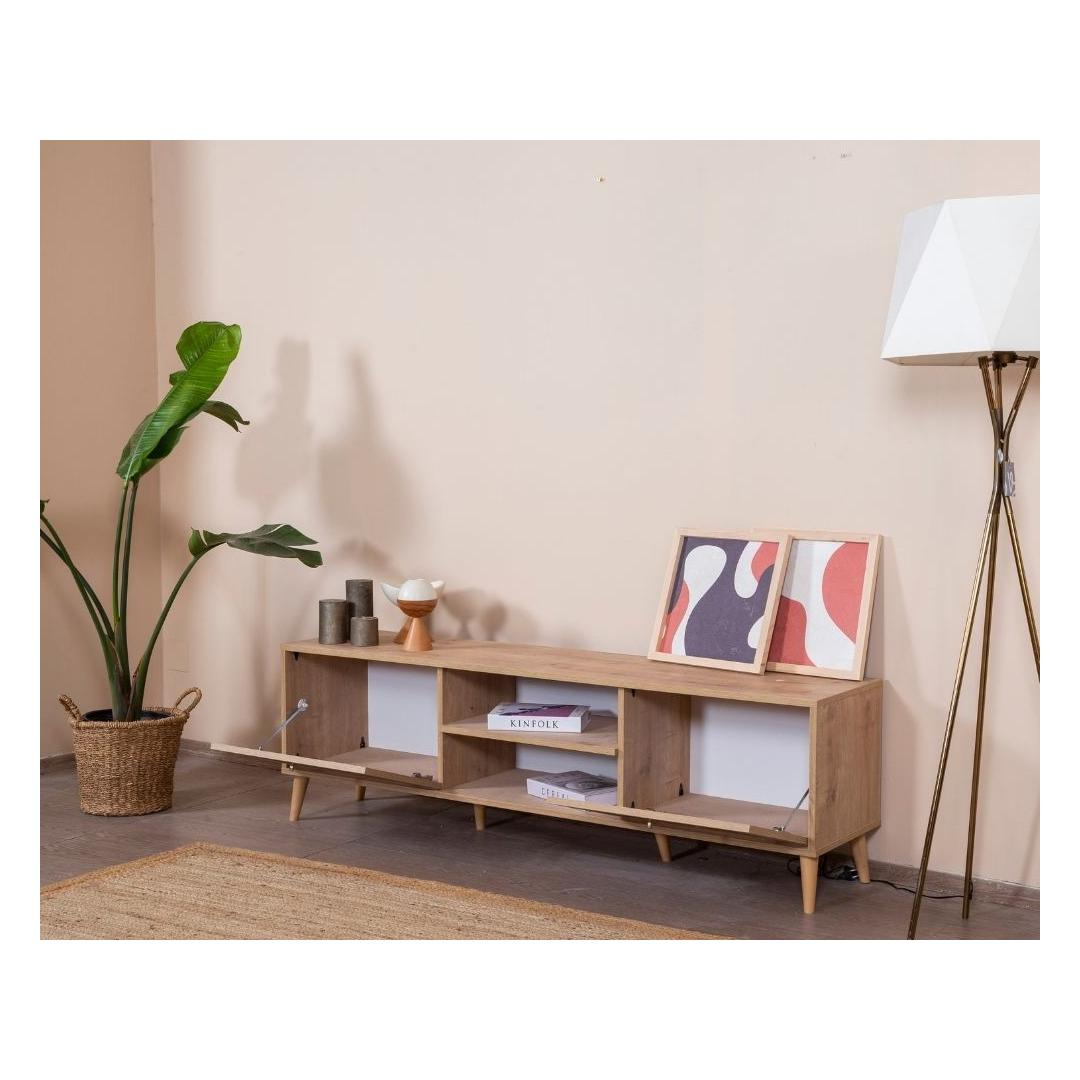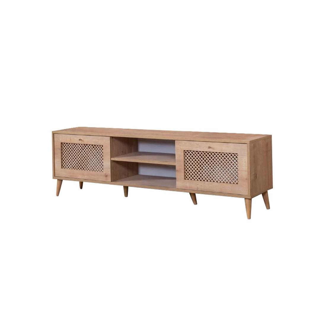 Tamme TV-alus omab sujuvat ja modernset disaini, mis täiendab vaevata igasugust sisustust. Selle tugev pruun värv ja geomeetrilised detailid lisavad sinu elutuppa natuke Skandinaavia võlu, luues sooja ja kutsuva atmosfääri, millest saavad osa nii sina kui ka sinu külalised.