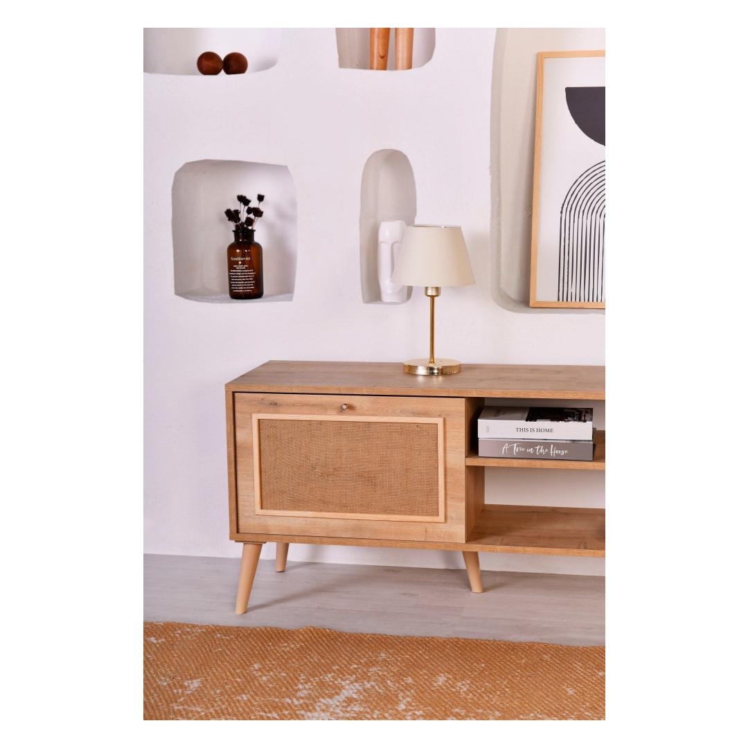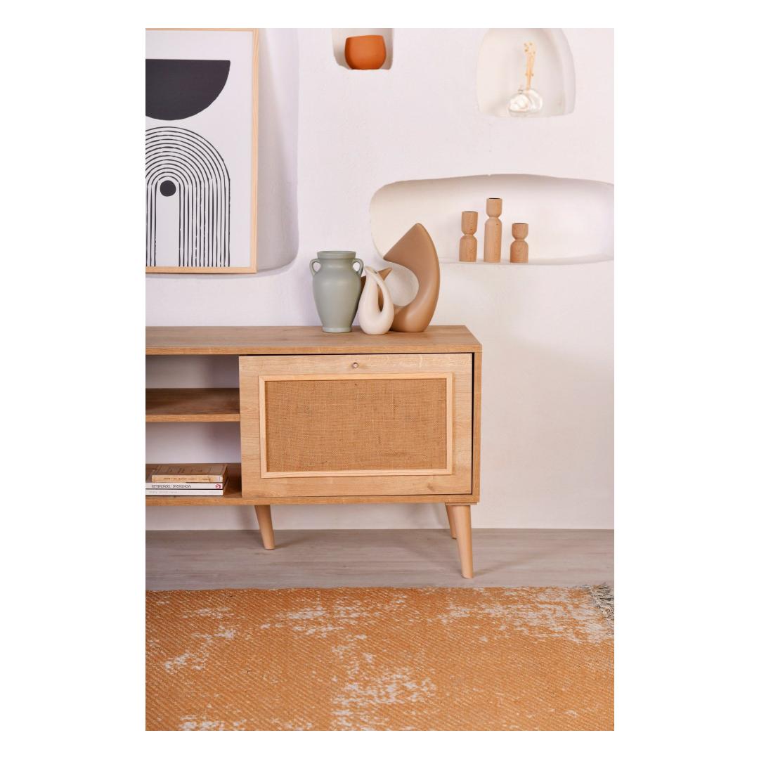 Muuda oma elutuba hubaseks ja stiilseks ruumiks meie hämmastava telerialuse abil. Valmistatud 100% melamiinkattega puitlaastplaadist, on see telerialus mitte ainult vastupidav, vaid ka uskumatult stiilne ja kaasaegne. Metalljalad lisavad tööstuslikku võlu, samas kui jute kangast aktsendid toovad sinu kodu sisustusse soojust.