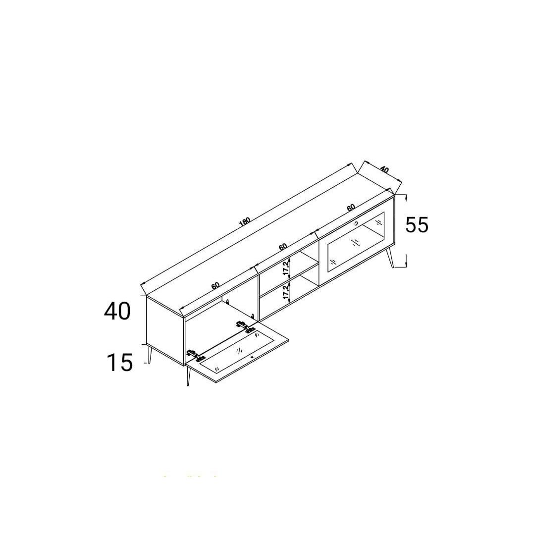 Valmistatud täpsusega ja detailidele tähelepanu pöörates, on meie telerialus loodud kestma. Tugevad metalljalad tagavad stabiilsuse ja toe, samas kui 15 cm jalakõrgus tagab optimaalse vaatamiskogemuse. Laiusega 180 cm, kõrgusega 55 cm ja sügavusega 40 cm on see telerialus ideaalne suurus sinu kodu meelelahutuse vajaduste jaoks.