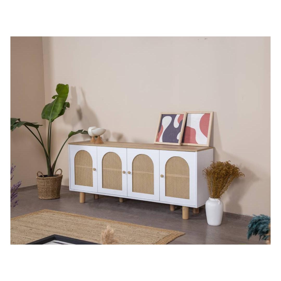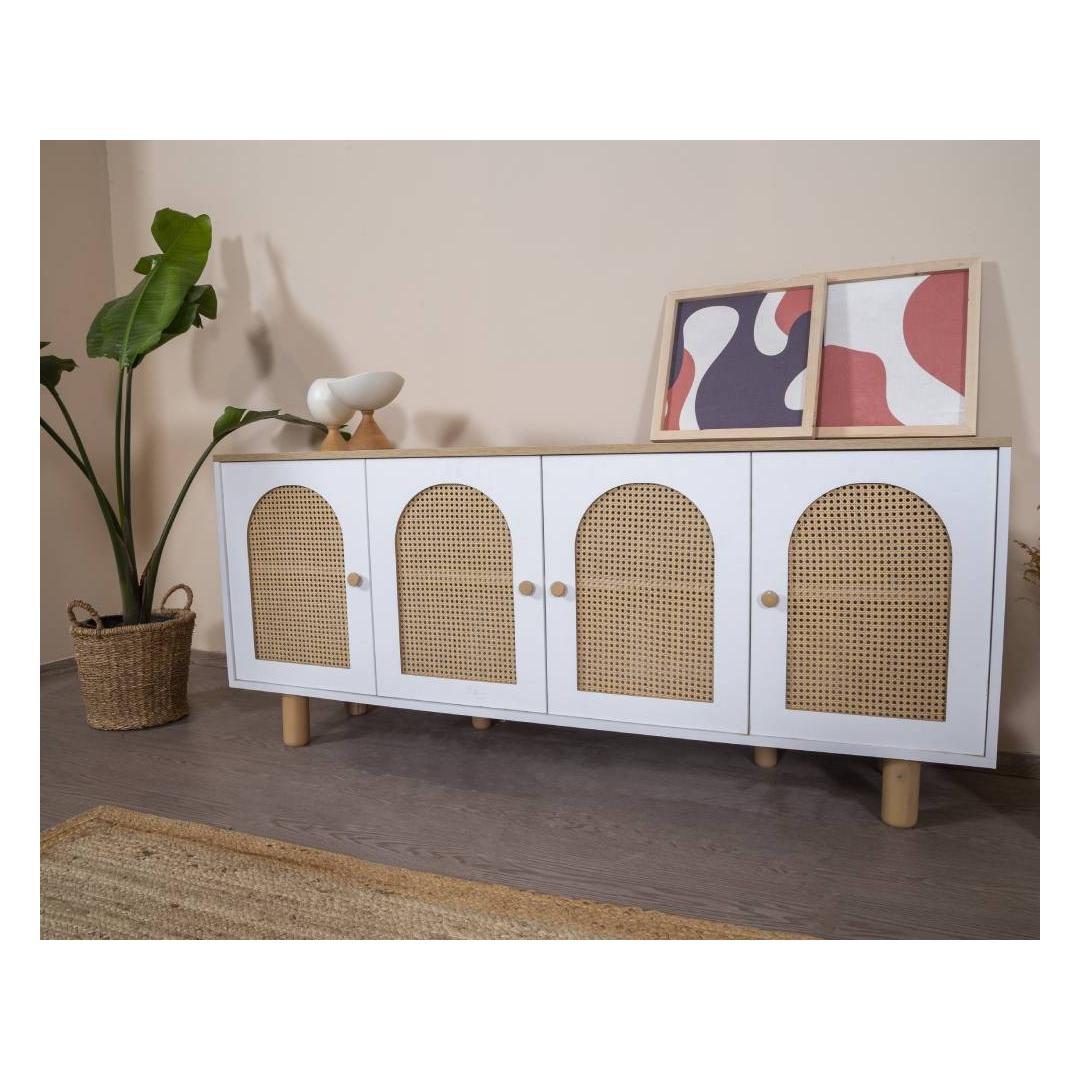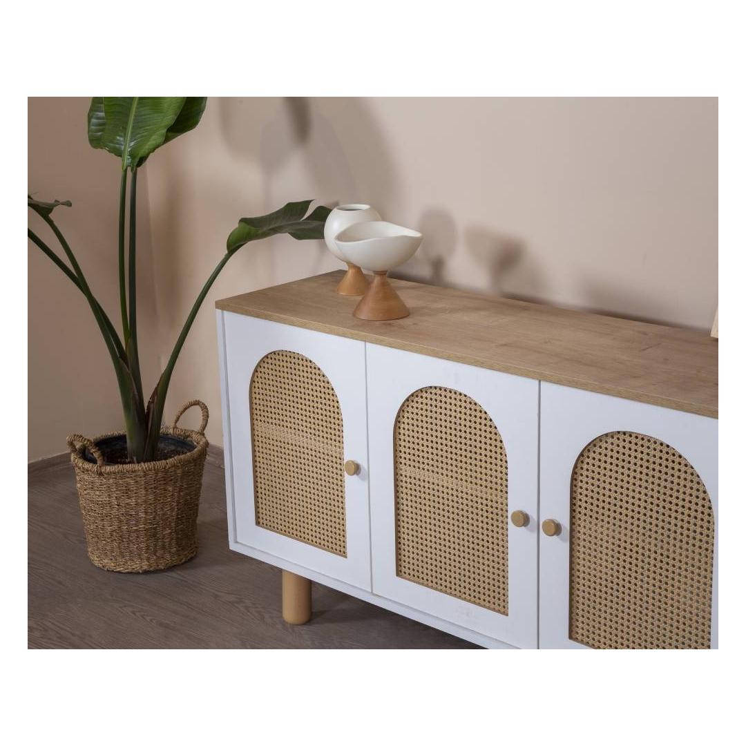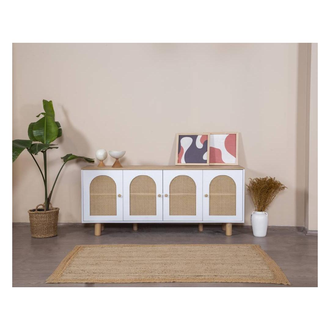 Muuda oma eluruum meie hämmastava modernse konsooliga, mis on valmistatud 100% MDF-ist ja elegantsetest sarapuu puust jalgadest ning käepidemetest. Selle konsooli sujuv disain ja puhtad jooned tõstavad koheselt iga ruumi stiili, lisades sellele natuke rafineeritust ja võlu.