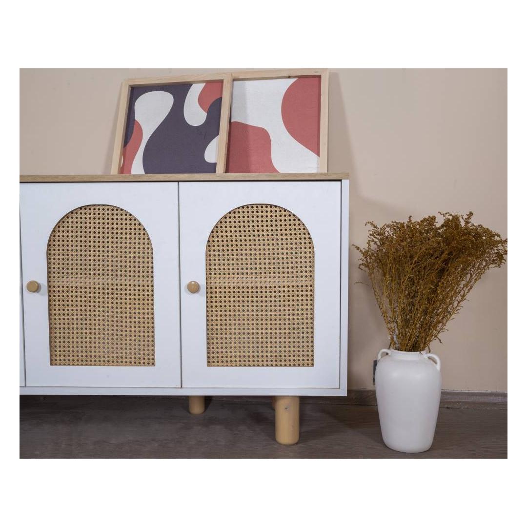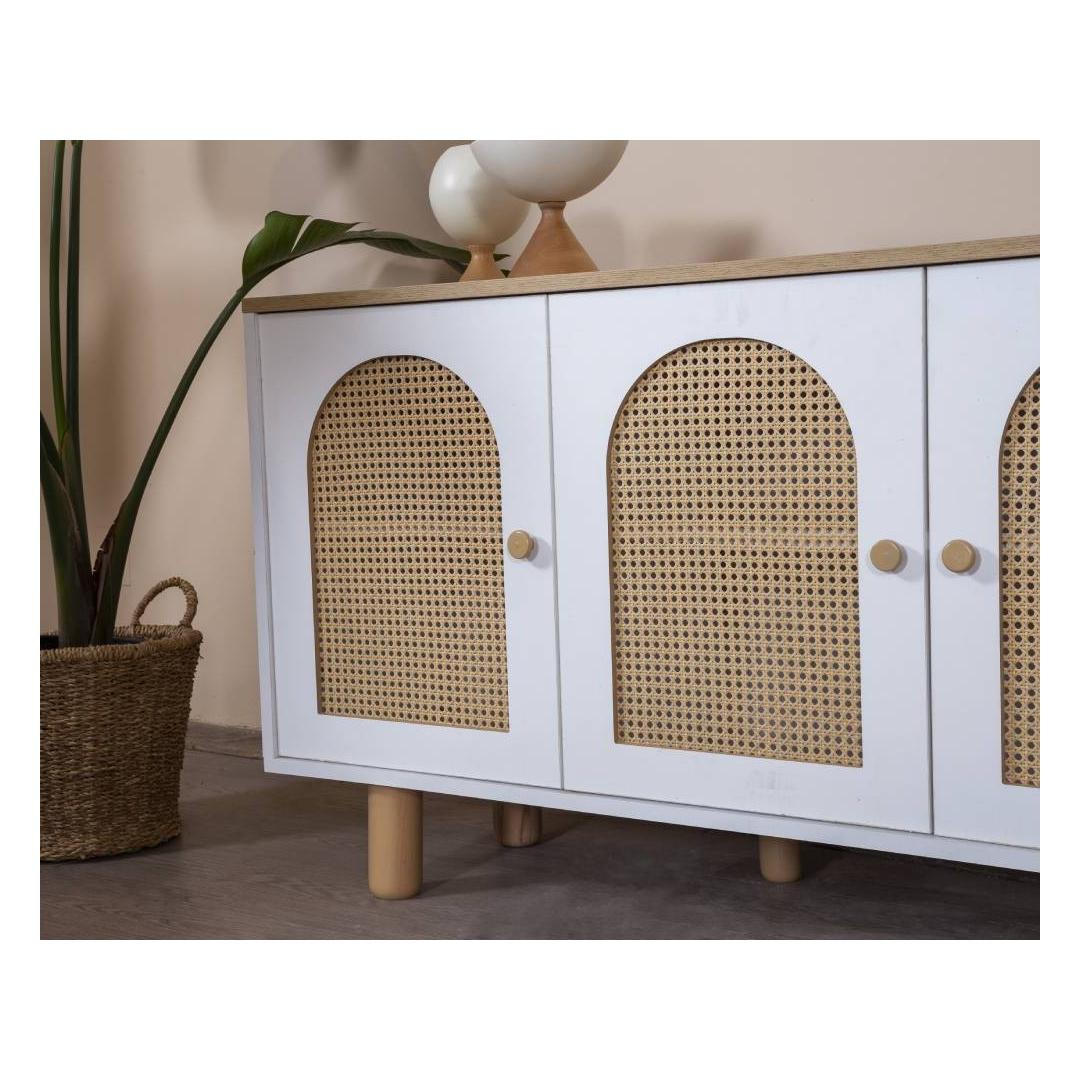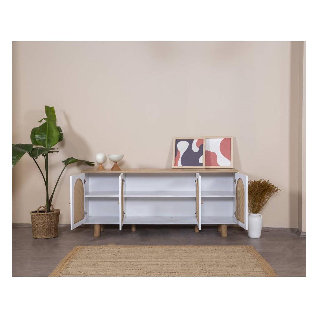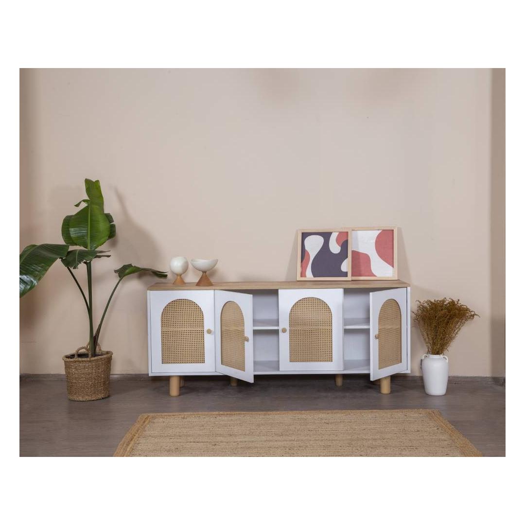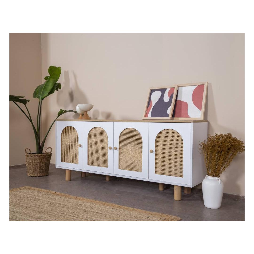 Muuda oma eluruum meie hämmastava modernse konsooliga, mis on valmistatud 100% MDF-ist ja elegantsetest sarapuu puust jalgadest ning käepidemetest. Selle konsooli sujuv disain ja puhtad jooned tõstavad koheselt iga ruumi stiili, lisades sellele natuke rafineeritust ja võlu.