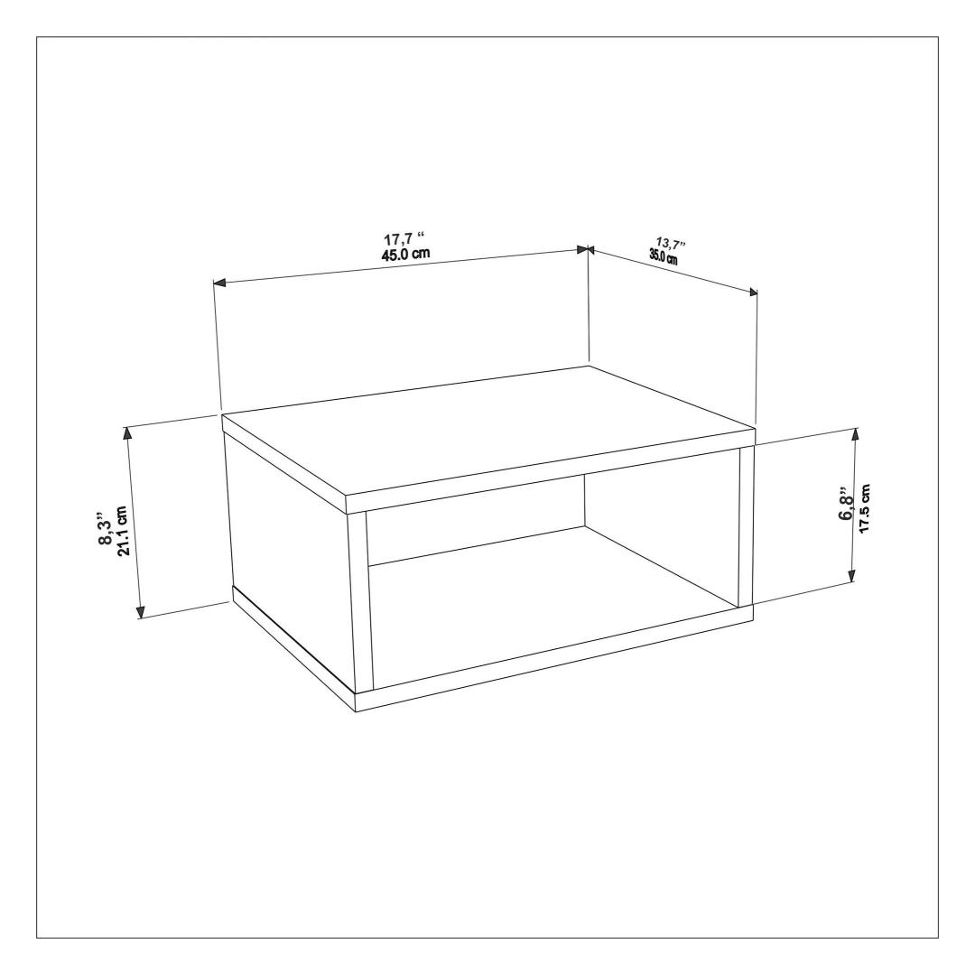Valmistatud 100% melamiinkattega puitlaastplaadist, on see öökapp loodud kestma. 18 mm paksus tagab tugevuse ja stabiilsuse, samas kui 45 cm laius, 21,1 cm kõrgus ja 35 cm sügavus pakuvad piisavalt hoiuruumi teie öökapivarade jaoks.