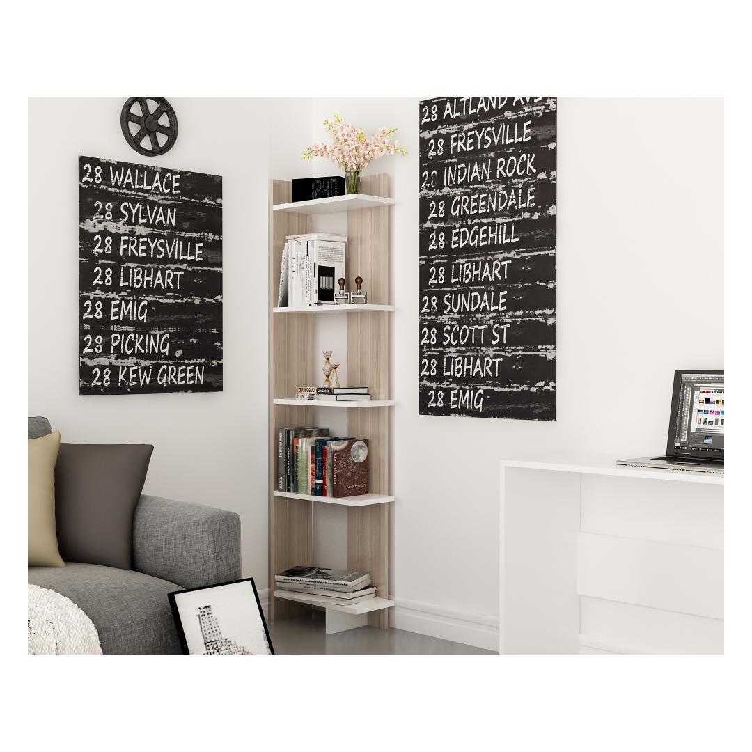 See raamaturiiul ei ole mitte ainult visuaalselt atraktiivne, vaid ka väga funktsionaalne. Seda saab hõlpsasti seinale kinnitada, tagades stabiilsuse ja ohutuse. Lisaks tagab 100% melamiiniga kaetud puitlaastplaadi 18 mm paksus vastupidavuse ja pikaealisuse.