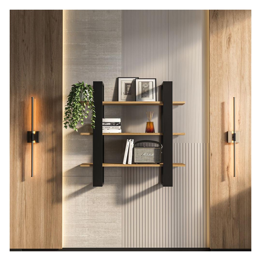Muuda oma eluruum meie kauni seinalehega, mis on valmistatud 100% melamiinkattega puitlaastplaadist, et tagada vastupidavus ja stiil. Sujuv disain ja kaasaegne värvikombinatsioon musta ja Oud tamme toonides tõstavad koheselt iga ruumi teie kodus.