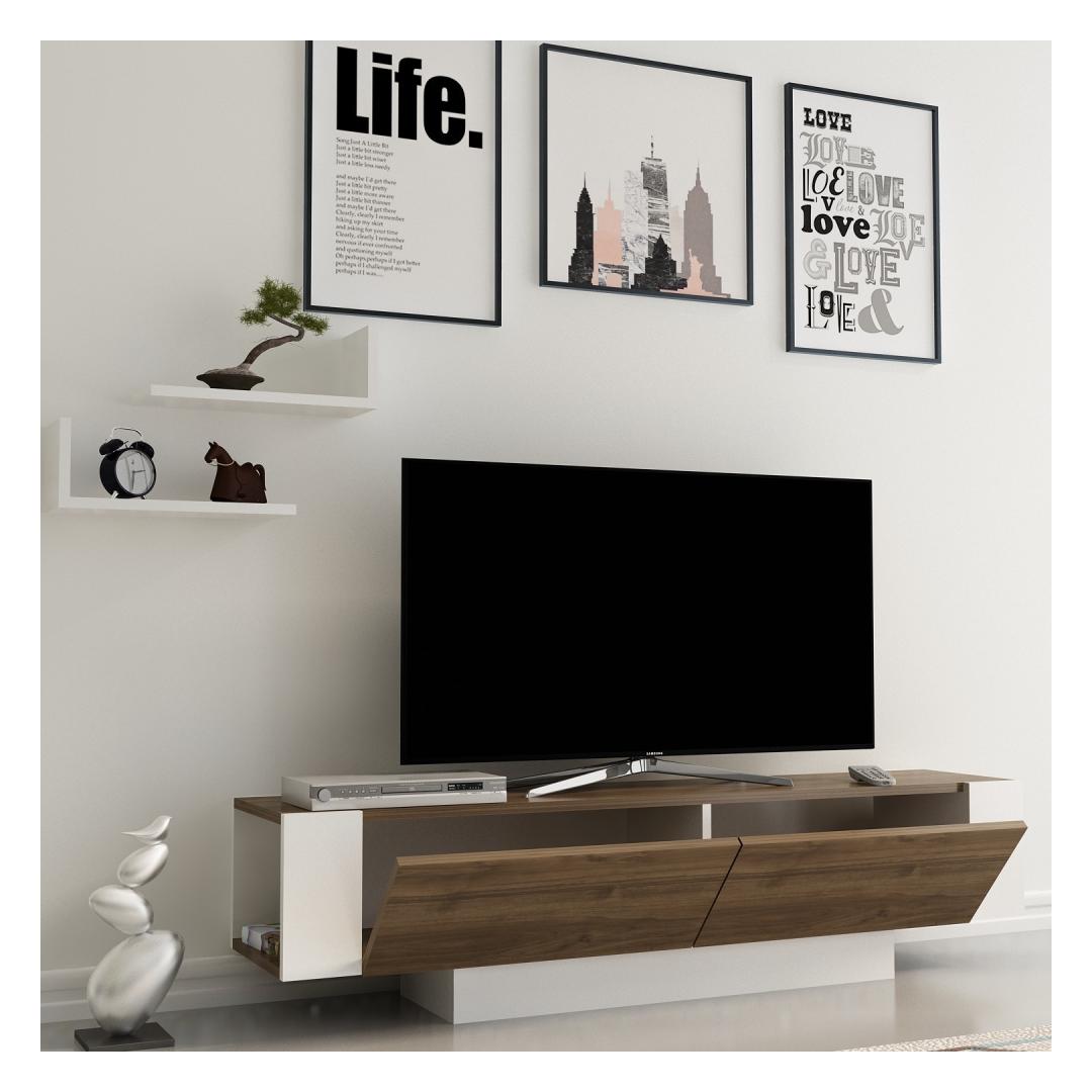 100% melamiiniga kaetud puitlaastplaadist valmistatud teleritugi on valmistatud kestma. 18 mm paksus tagab vastupidavuse ja tugevuse, samal ajal kui pähklipuu ja valge värvikombinatsioon lisab elegantsi igasse ruumi.
