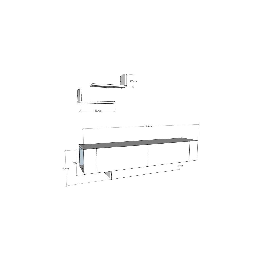 TV Stand Size: Width: 150 cm Height: 41,6 cm Depth: 31,5 cm