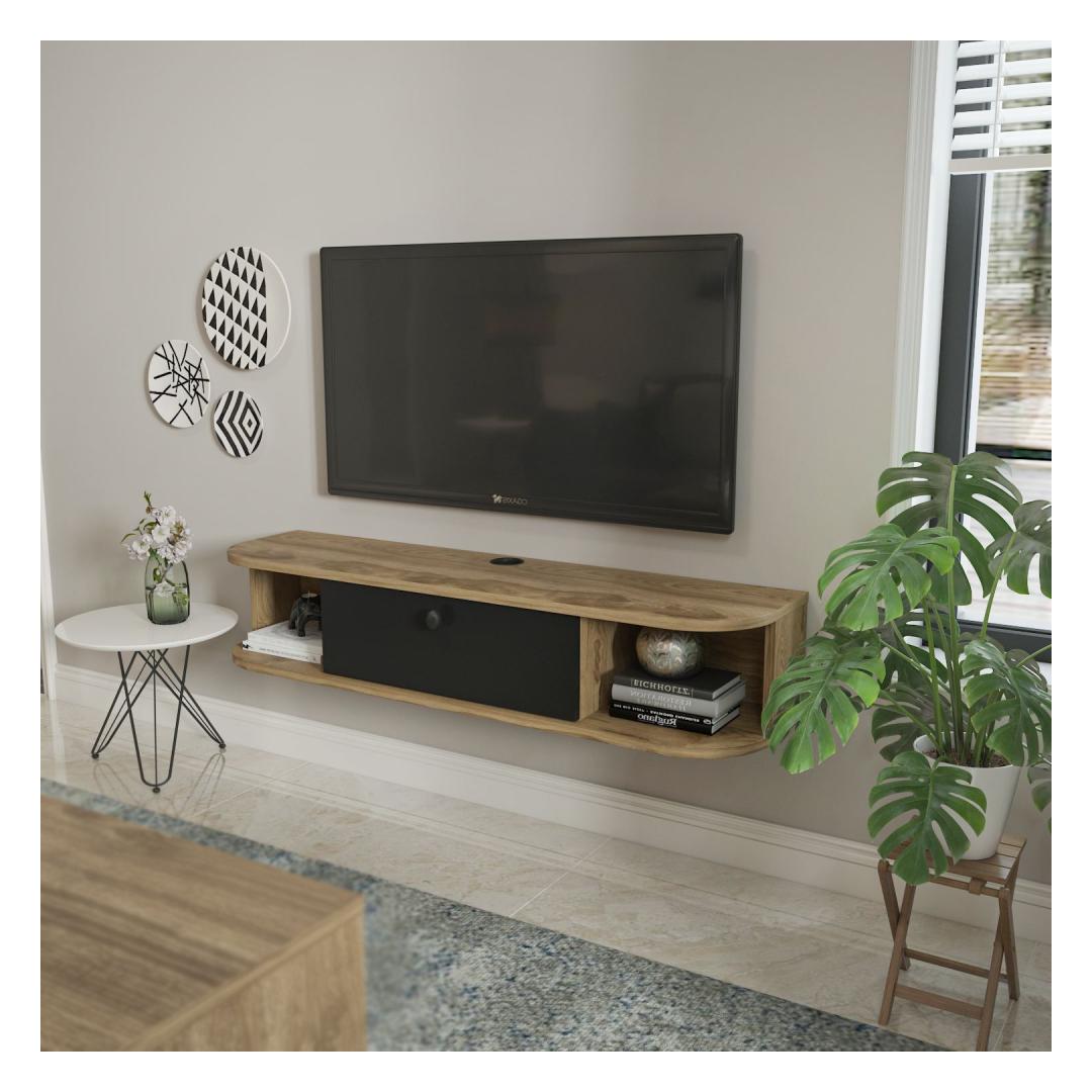 Muuda oma elutuba stiilseks ja organiseeritud ruumiks meie elegantse ja modernse telerialuse abil. See telerialus ei ole lihtsalt mööbliese, vaid sinu maitse ja isikupära väljendus. Musta ja Oud tamme värvi kombinatsioon lisab igasse ruumi elegantsi, samas kui 100% melamiinkattega puitlaastplaadid tagavad vastupidavuse ja pikaealisuse.