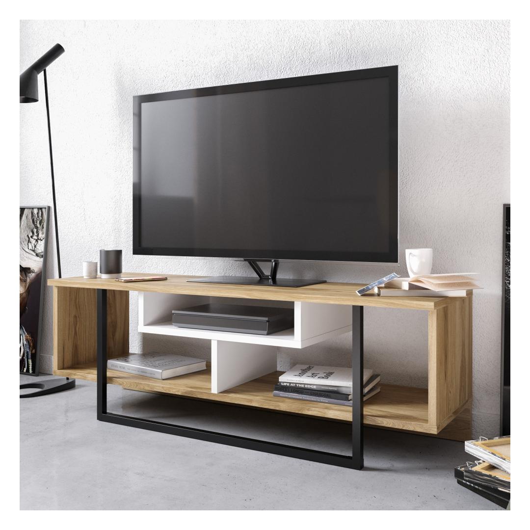 Täienda oma elutuba meie moodsa ja stiilse teleripuldiga. See telerialus on disainitud kaasaegsete ja tööstuslike elementide täiusliku seguga, mis lisab teie kodu sisustusele kindlasti elegantsi.